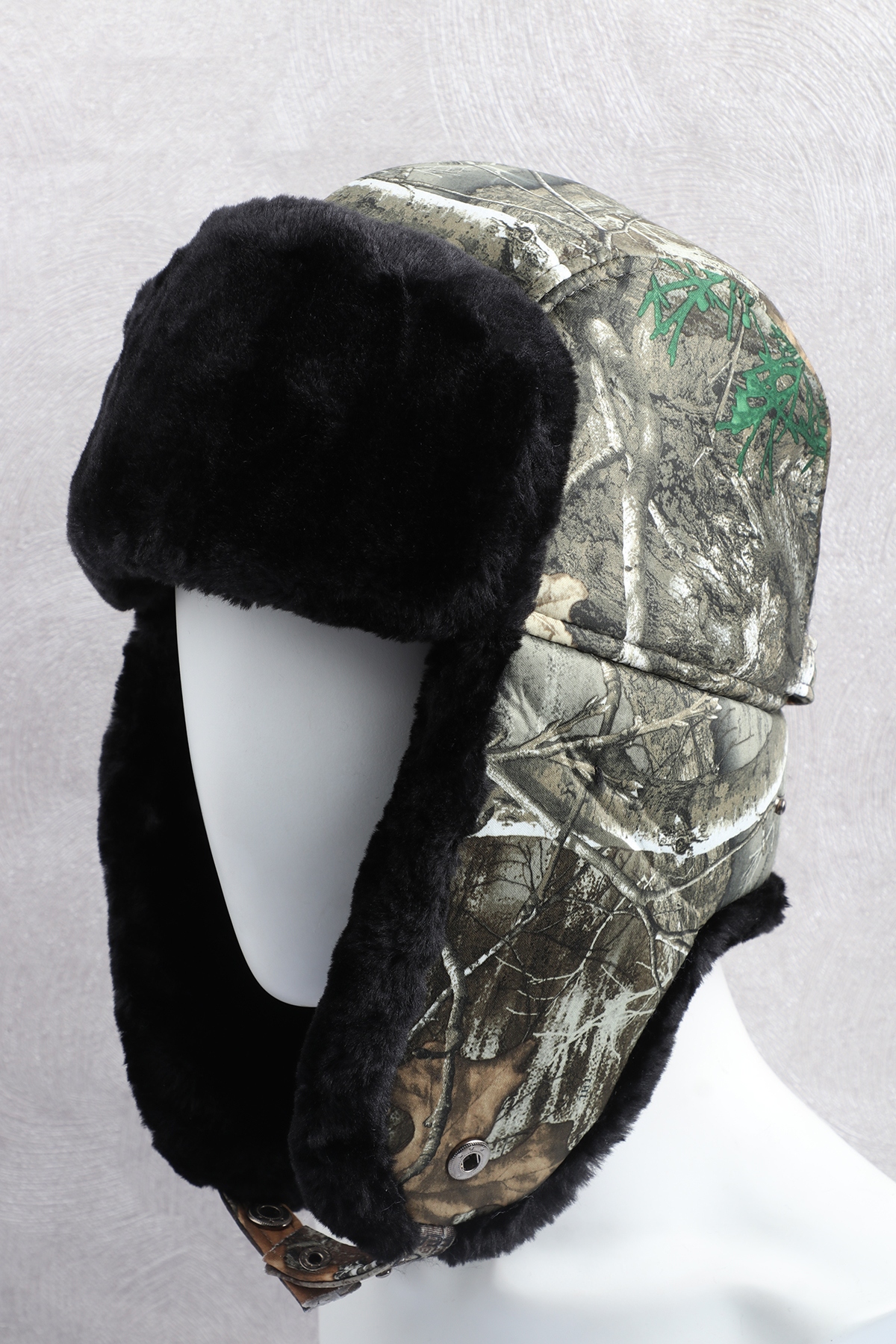 Шапка-ушанка с меховой подкладкой, выполнена из искусственной кожи. Для более удобного выбора размера сзади шапки предусмотрен ремешок, что позволяет сузить или расширить диаметр шапки. На ушках шапки имеются кнопки, которые позволяют носить ушки застегнутыми наверх или наоборот застегнутыми на подбородке.