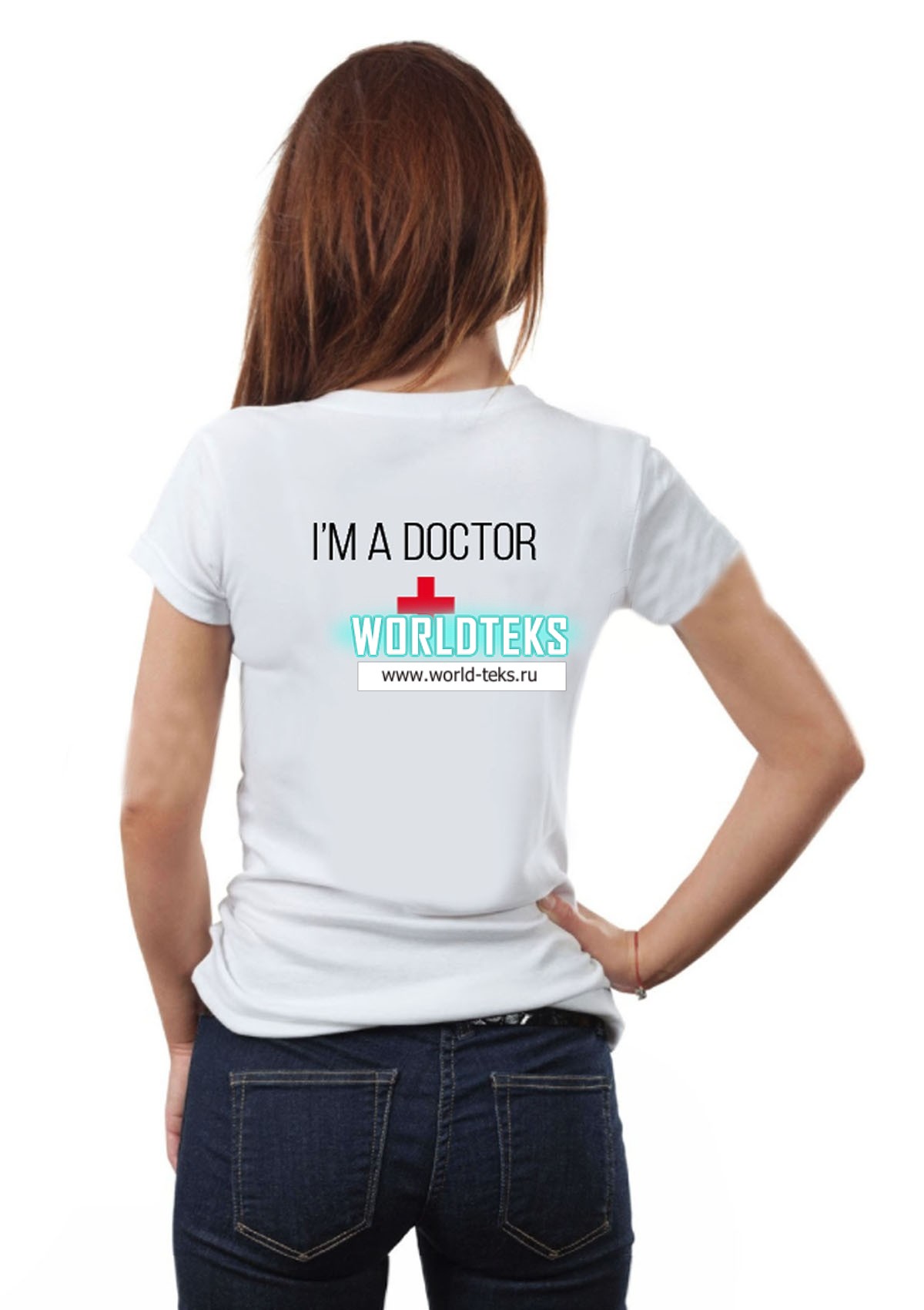 Футболка женская "Я доктор" трикотажное полотно (белый) №УФР-МЕД-77
