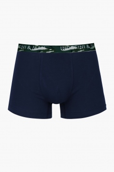 Стильные и удобные мужские боксеры выполнены в темно-синем цвете из натурального хлопка с добавлением эластана. Модель отличается мягкой эластичной резинкой с камуфляжным принтом и фирменным логотипом, которая надежно фиксирует изделие на талии, не сдавливая кожу.