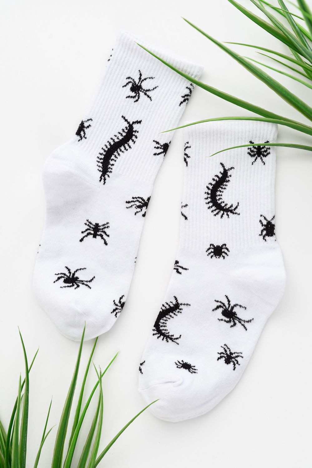 Комплект носков с резинкой по всей верхней части. По всему носку изображение насекомых. В комплекте 2 пары.