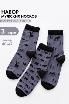 Комплект мужских носков 3 пары. На носках изображения с тематикой охоты.