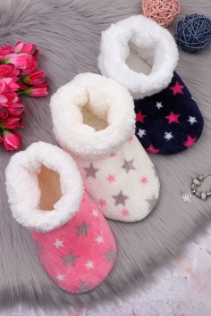 Мягкие, тёплые и уютные носки-тапки женские сделаны сапожками. Прекрасно будут согревать ноги когда холодно. Текстильная подошва покрыта антискользящими точками. Благодаря отсутствию твёрдой подошвы тапочки едва ощутимы на ногах.