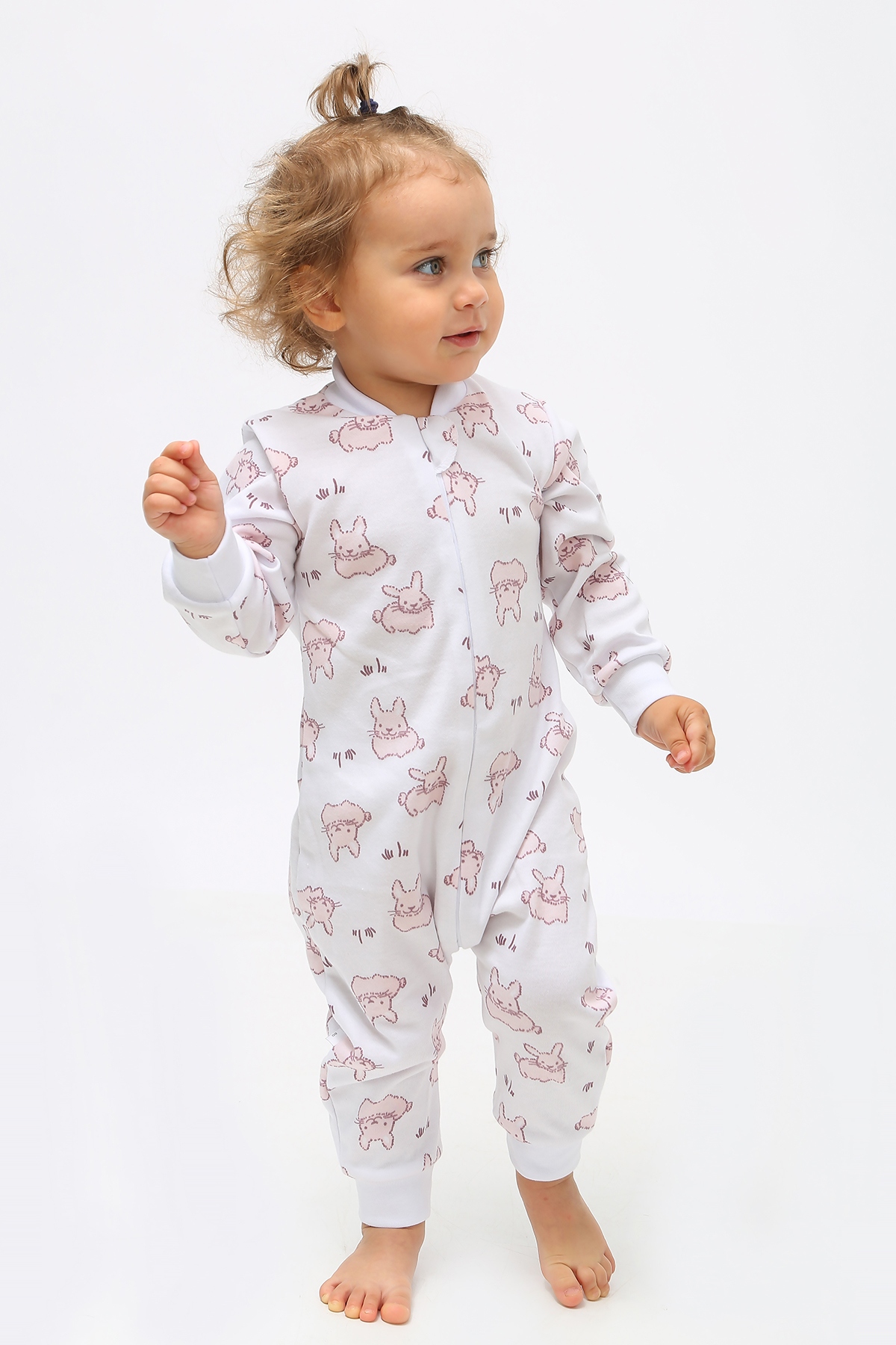 Комбинезон на молнии (белый с зайчиком) №ТГ-001-20