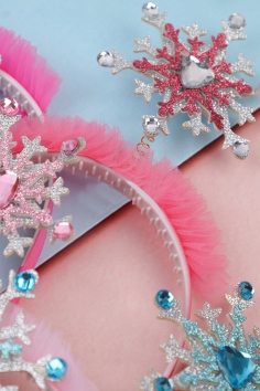 длина - 38 см, ширина - 1,6 см; снежинка - 9 х 7,5 см; обхват головы - 48-50 см.