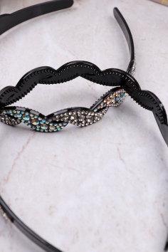 Модель ободка прекрасно держится на голове, также прочно держит волосы, не путает и не вырывает их. Ободок средней ширины. Украшен стразами.