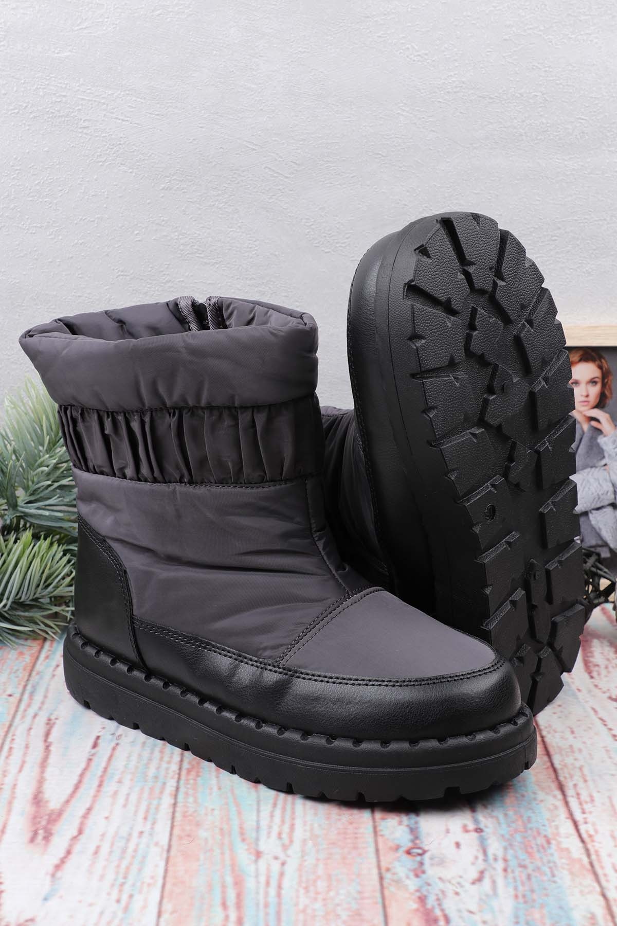 Тёплые женские дутики расчитаны на плохую и холодную погоду. Модель сделана из ткани с водоотталкивающей обработкой в тандеме с вставкой по контуру стопы и в области пятки из искусственной кожи, обеспечивающей стопе дополнительную защиту. Удобные, легко надеваются и снимаются с помощью застёжки-молнии сбоку. Изнутри модель утеплена искусственным мехом, хорошо удерживает тепло. Съёмная стелька.