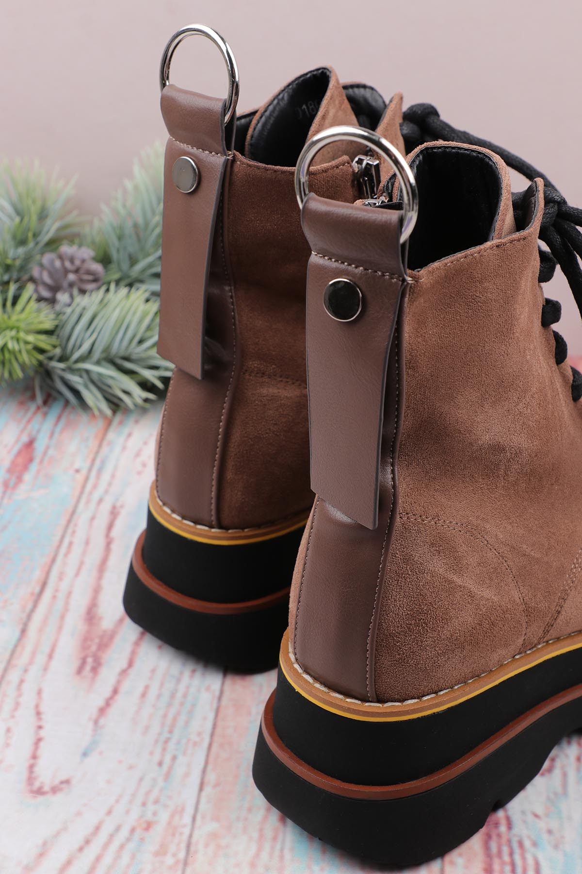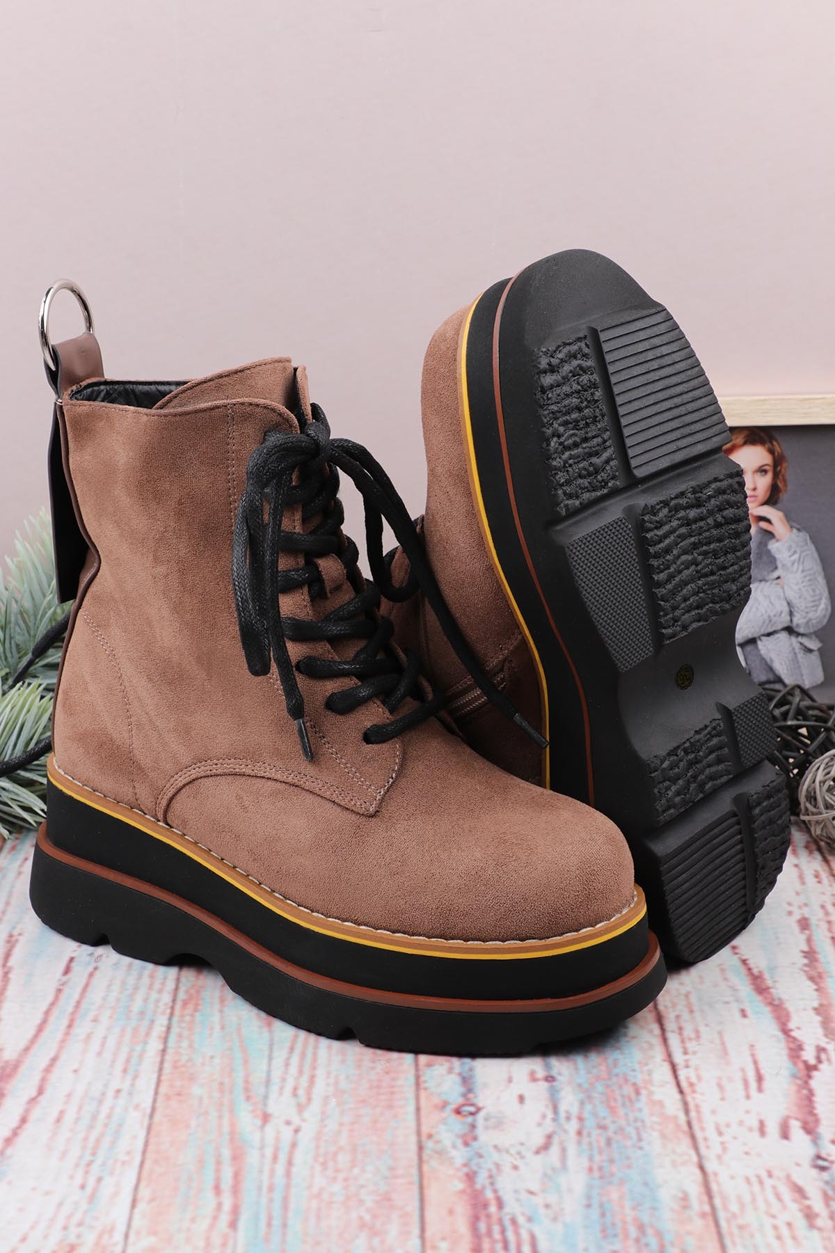 Замшевые ботинки женские на высокой подошве. Высокая подошва - стильный тренд. С такой обувью можно создавать красивые модные образы. Подкладка и стелька ботинок из искусственного меха защитят от холода.
