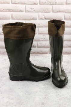 Резиновые сапоги с удобной формой. Сапоги снабжены манжетой из водоотталкивающей ткани с шнурками-завязками против попадения внутрь влаги и предназначены для защиты ног от влаги и загрязнений.