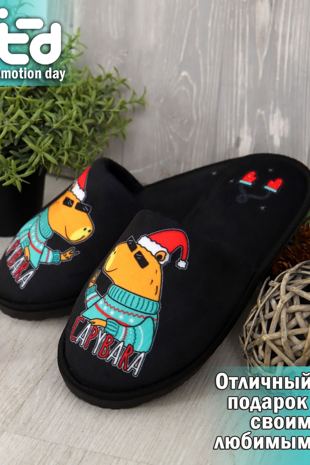 Мягкие домашние тапочки с закрытым носом и открытой пяткой – это идеальный аксессуар для создания уютной атмосферы в вашем доме! Верх и стелька изготовлены из теплых и приятных на ощупь материалов. Подошва изготовленная из высококачественного ПВХ, который еще называют EVA. Обеспечивает отличное сцепление с полом и защиту от скольжения. Это уникальный материал и при всей своей комфортабельности, долго способен выдерживать большие нагрузки Удобные и стильные, эти тапочки с рисунком станут незаменимым аксессуаром вашего домашнего гардероба как зимой, так и в летние дни! Все наши тапки прошиваются для большей износостойкости армированной нитью, а сублимационная печать позволяет наносить краску на волокна ткани, из-за чего цвета получаются насыщенными и сохраняют яркость даже после нескольких стирок. Дизайнерские принты придадут уникальности и поднимут настроение вам и вашим гостям!