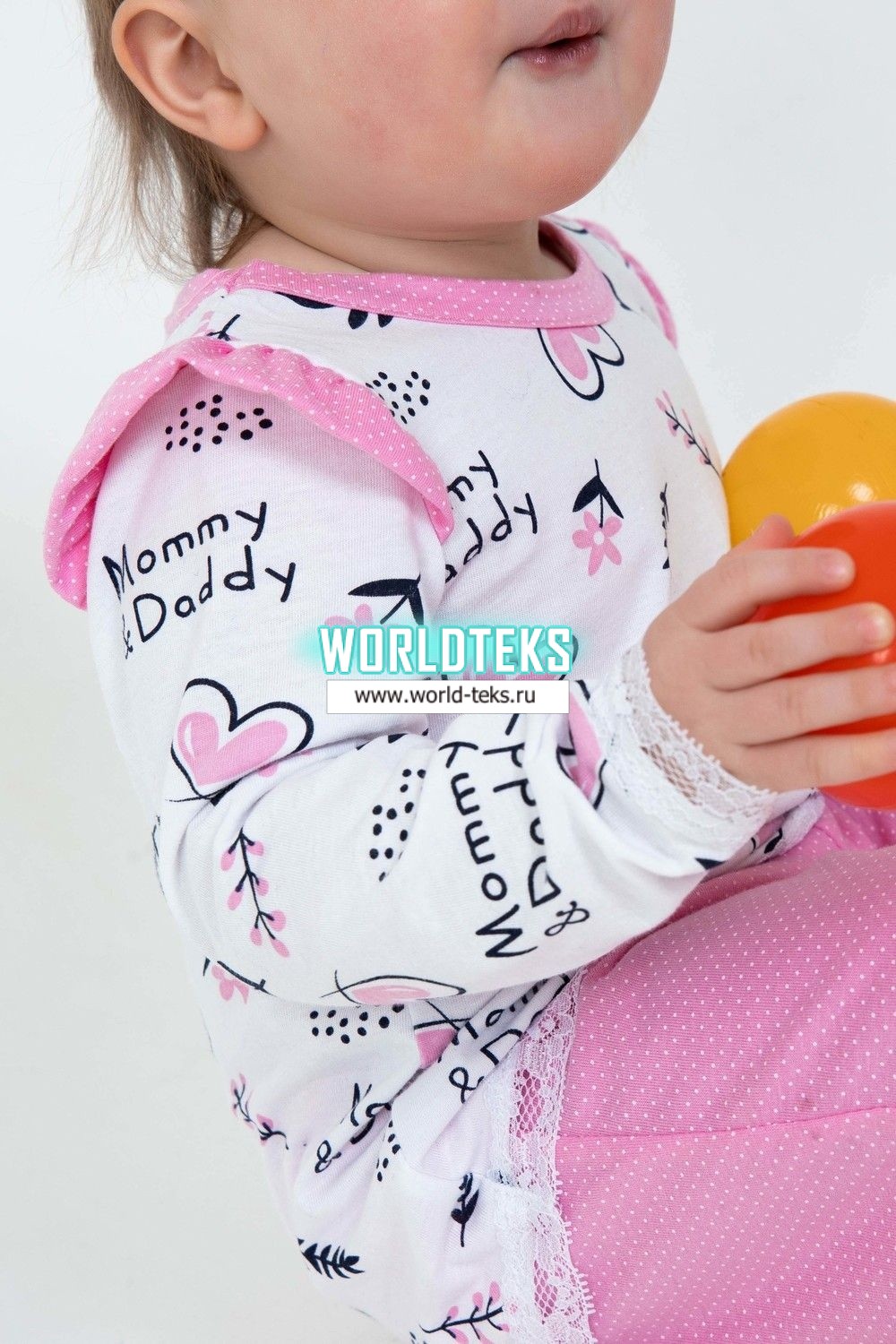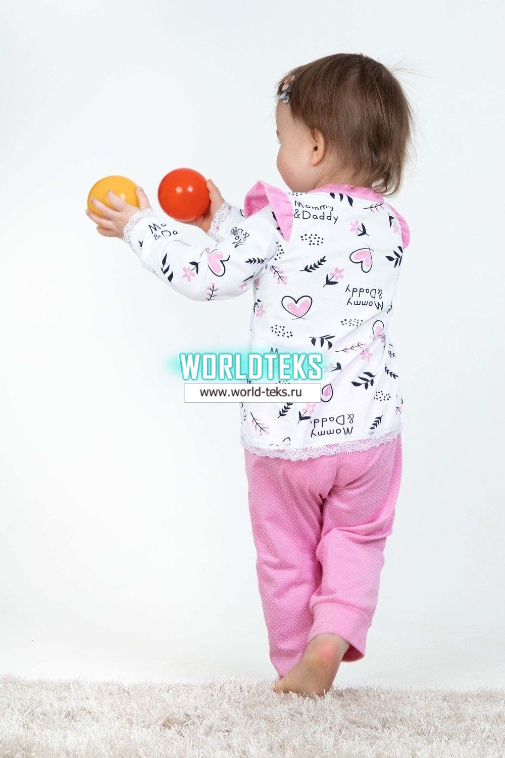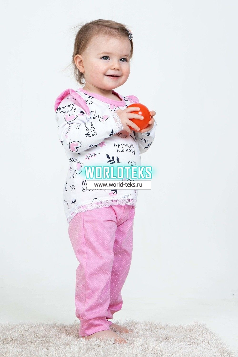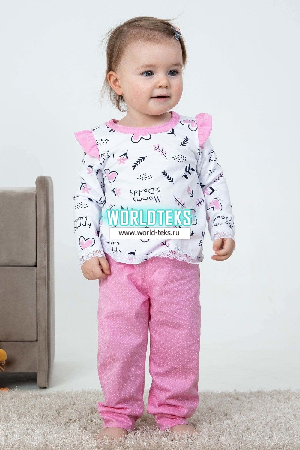 Детская пижамка для девочек, идеальный комплект для сна. Данная модель обеспечит Вашей малышке тепло, уют и, что очень важно, здоровый крепкий сон. Кофточка свободного кроя с длинными рукавами, в комплекте с простыми и легкими брючками. Низки рукавов и кофты отделаны мягким кружевом. Штанишки на манжете.