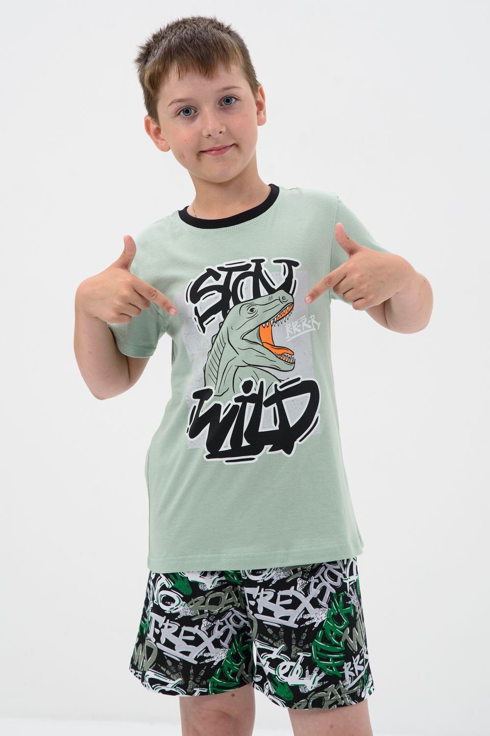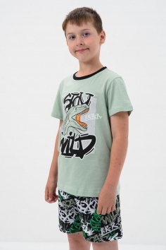 Пижама Дикарь детская короткий рукав с шортами - полынь