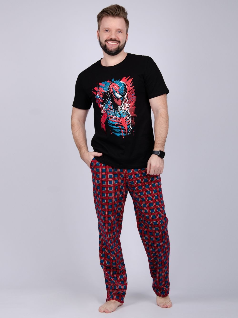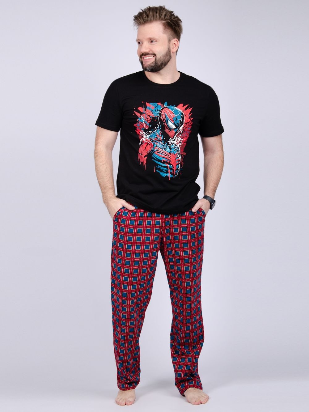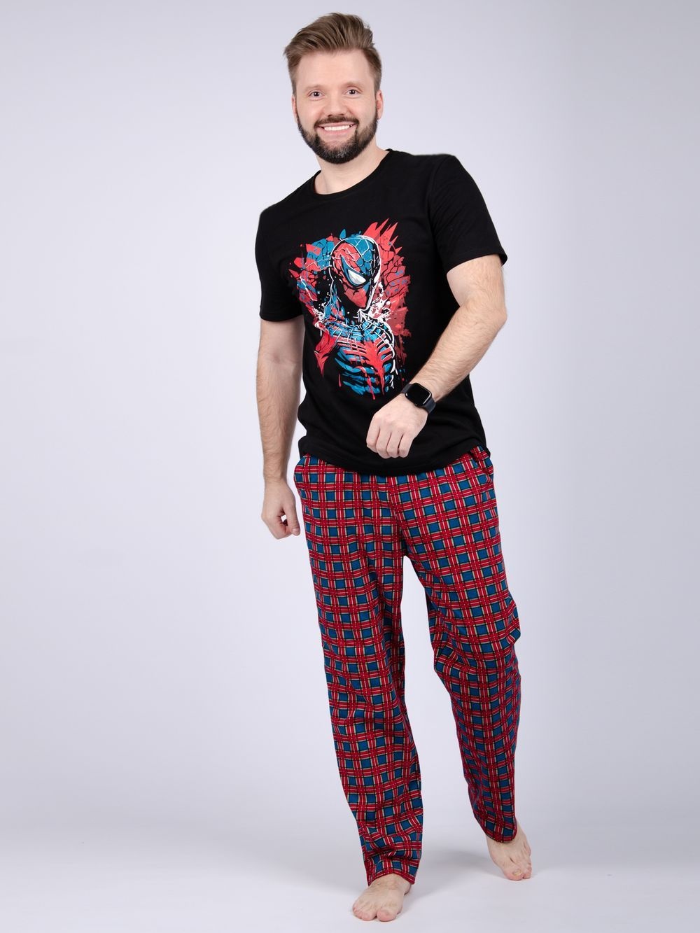 Пижама мужская: футболка прямого кроя с короткими рукавами с принтом на полочке, брюки прямые, с карманами в боковых швах.