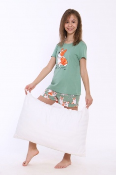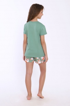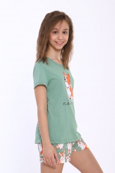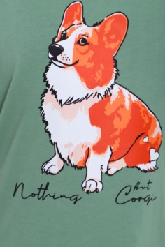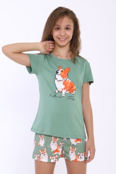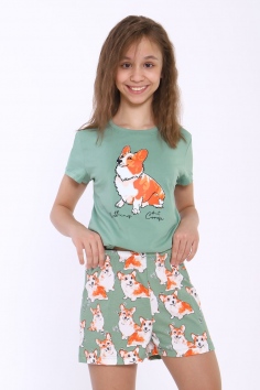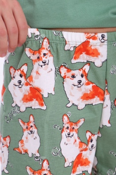 Пижама для девочки Корги на зеленом арт. ПД-023-062 - зеленый
