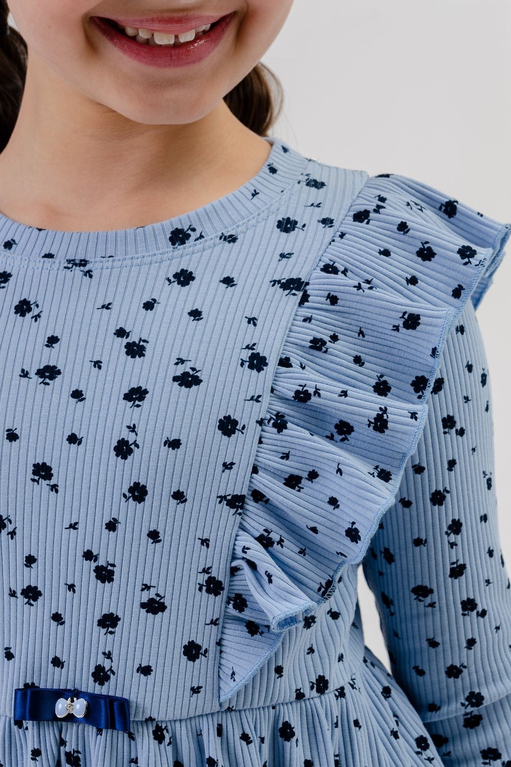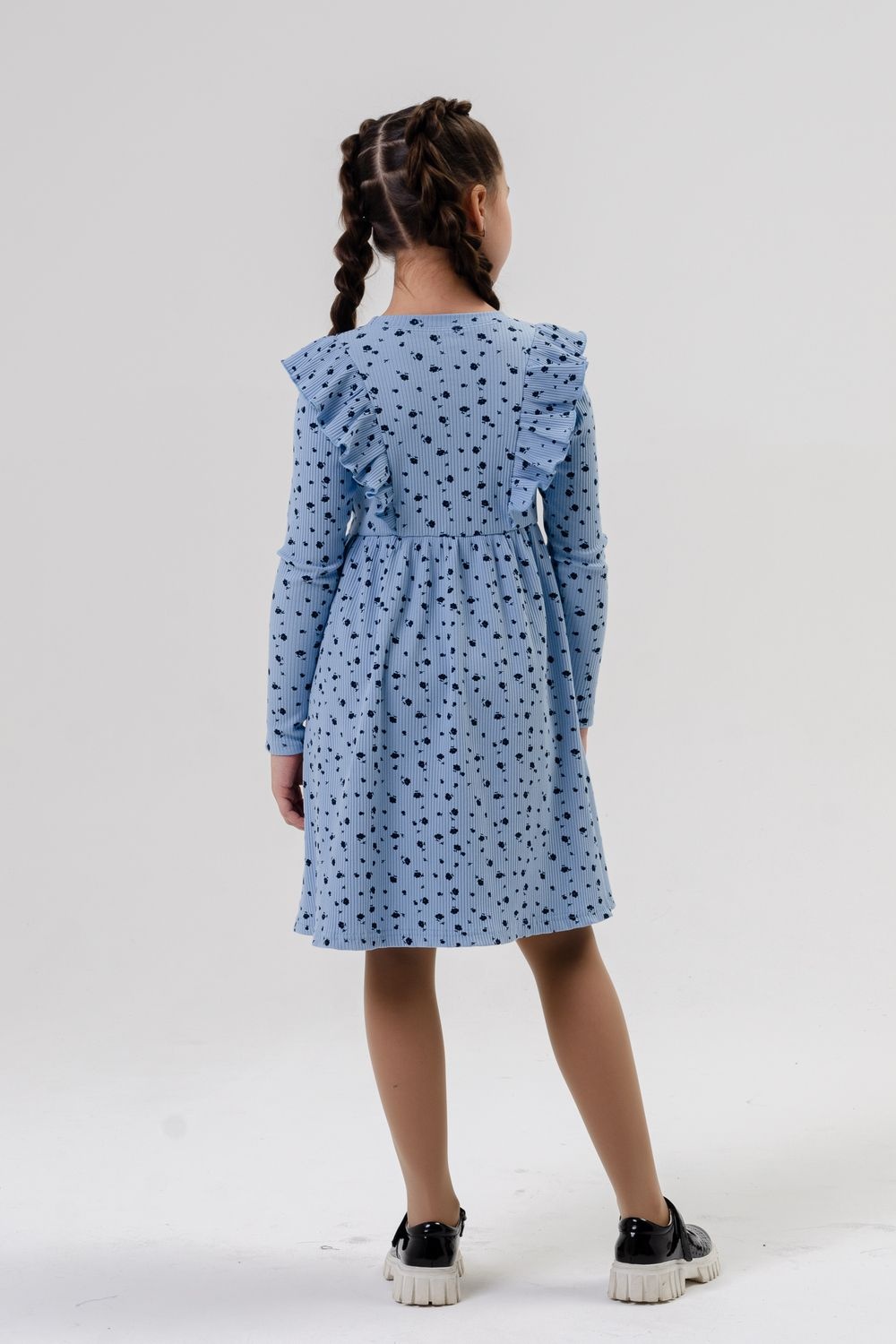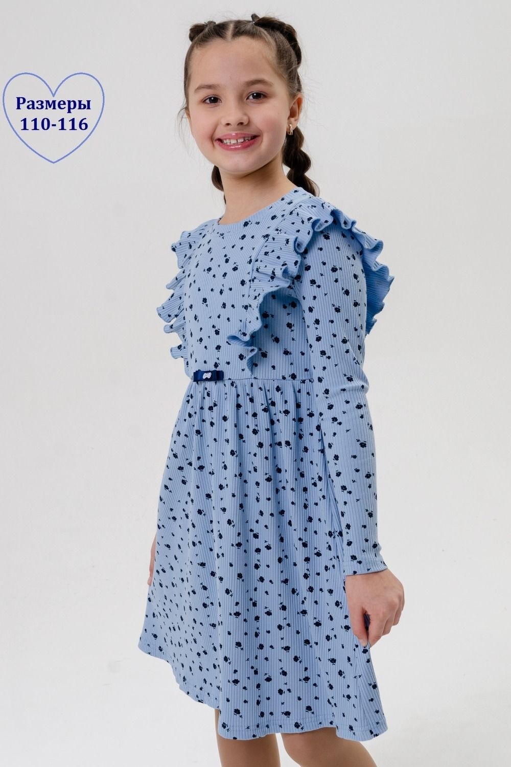 Платье для девочки в садик с длинным рукавом из трикотажного полотна в рубчик с рисунком, расширенное от линии талии, приталенного силуэта, верхние части переда и спинки с присборенными крылышками, по линии талии по центру пришит декоративный элемент. Сшито из набивного мягкого материала 95% хлопок 5% лайкра - лапша. Идеально платье в детский сад, для прогулок, для праздника и на каждый день, обладает прочностью, которая позволяет Вашей девочке активно играть и веселиться, не ограничивая движения. Прекрасная посадка позволяет использовать, как повседневное, а ещё наше платье для девочки не имеет застежек, что делает его легким в надевании и снятии, ребёнок сможет самостоятельно одеваться и чувствовать себя самой красивой принцессой. В нашей одежде не будет жарко в период включенного отопления осенью, весной и зимой. Подойдёт в качестве подарка на Новый 2024 Год, выпускной, день рождения.