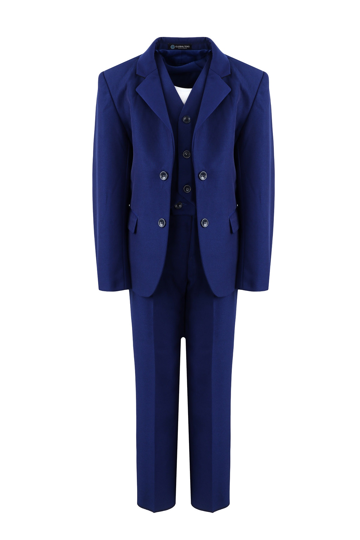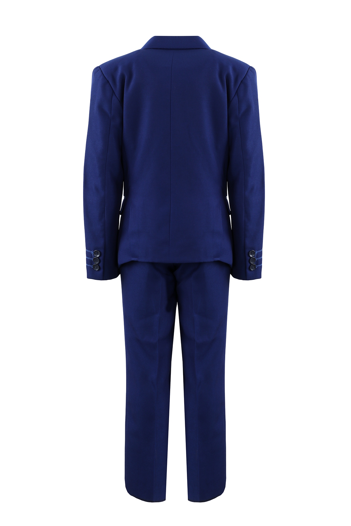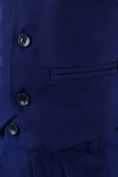 Костюм тройка - яркий и комфортный комплект классического дизайна и строгого фасона. Состоит из пиджака, жилетки и брюк в темно-синем цвете. Идеально подходит для различных мероприятий, выпускного вечера или первого дня в школе.