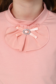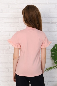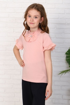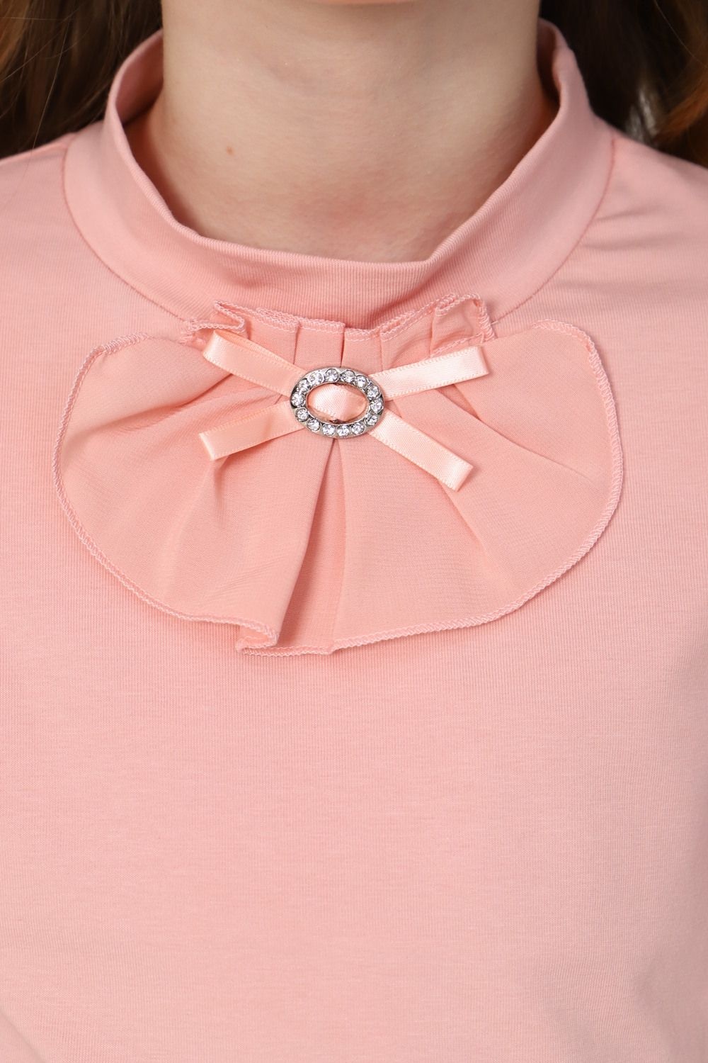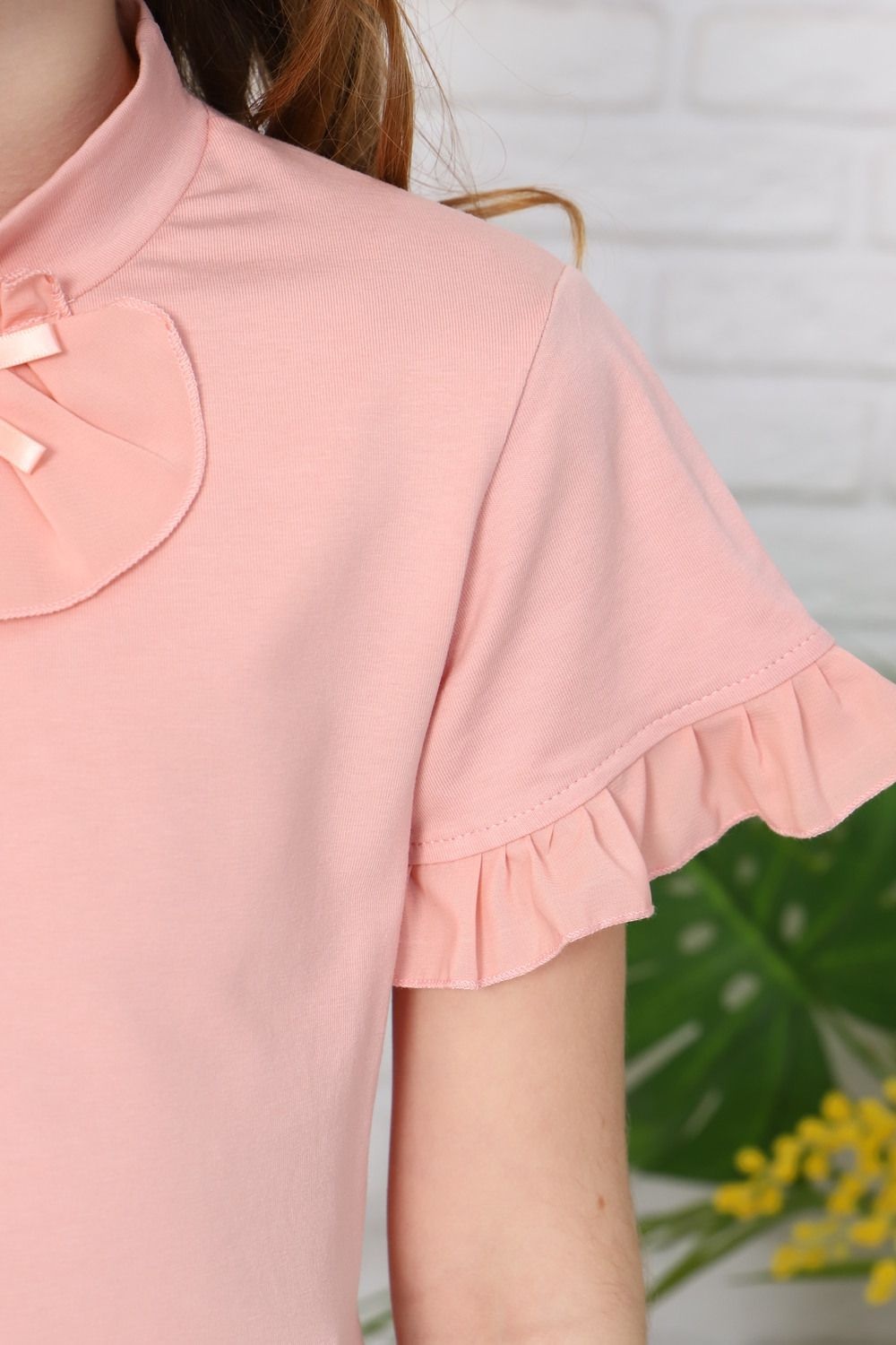 Блузка школьная для девочки с короткими рукавами (с рюшкой по низу), воротником - стойкой, жабо со складками и брошкой (не отстёгивается!), прилегающего силуэта, без застежки. Основа джемпера выполнена из кулирки с лайкрой, жабо и рюшка по низу рукава из шифона. Сшита из однотонного мягкого хлопкового трикотажного материала с добавлением в состав хлопка 92% и лайкры 8 % и шифона. Школьная форма украсит и дополнит любой образ не только в школу, но и для повседневной носки, на день рождения, фотосессию и для особых случаев. Блузка отлично сидит по фигуре, движения в нем комфортные, позволяет выглядеть ребенку изящно. Хорошо смотрится в сочетании с юбкой или брюками, со школьным костюмом, отлично сохраняют цвет и форму при активной носке и после многократных стирок. Используемый материал кофты мягкий и приятный телу, устойчив к износу, не садится, не образует катышек на поверхности, имеет эффектный внешний вид.