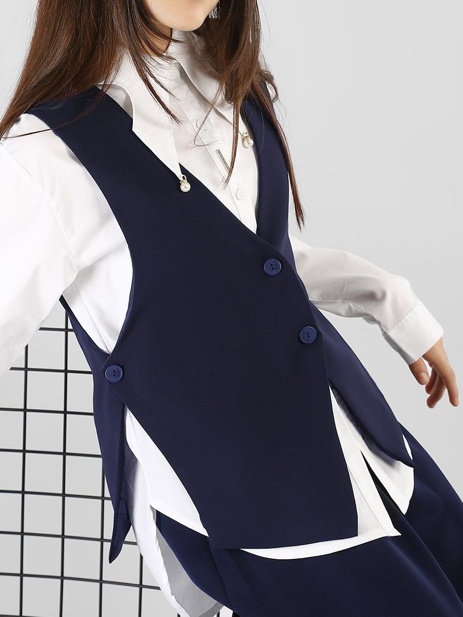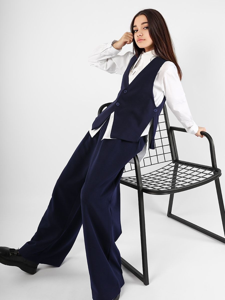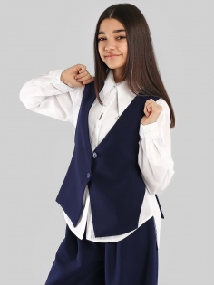 Классический, однобортный жилет для девочки Соль&Перец. Жилет с подкладом, выполнен из износостойкой костюмной ткани «Босс» которая долго сохраняет форму и привлекательный внешний вид. Жилет прекрасно сочетается с юбками и брюками. Подойдет для посещения школы, официального или праздничного мероприятия.