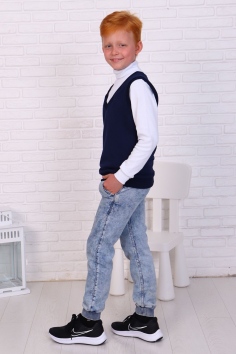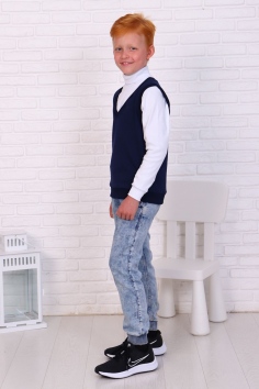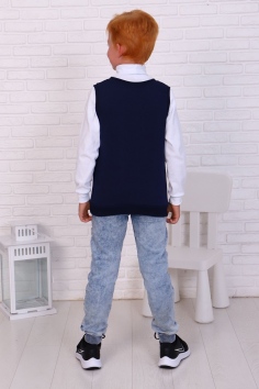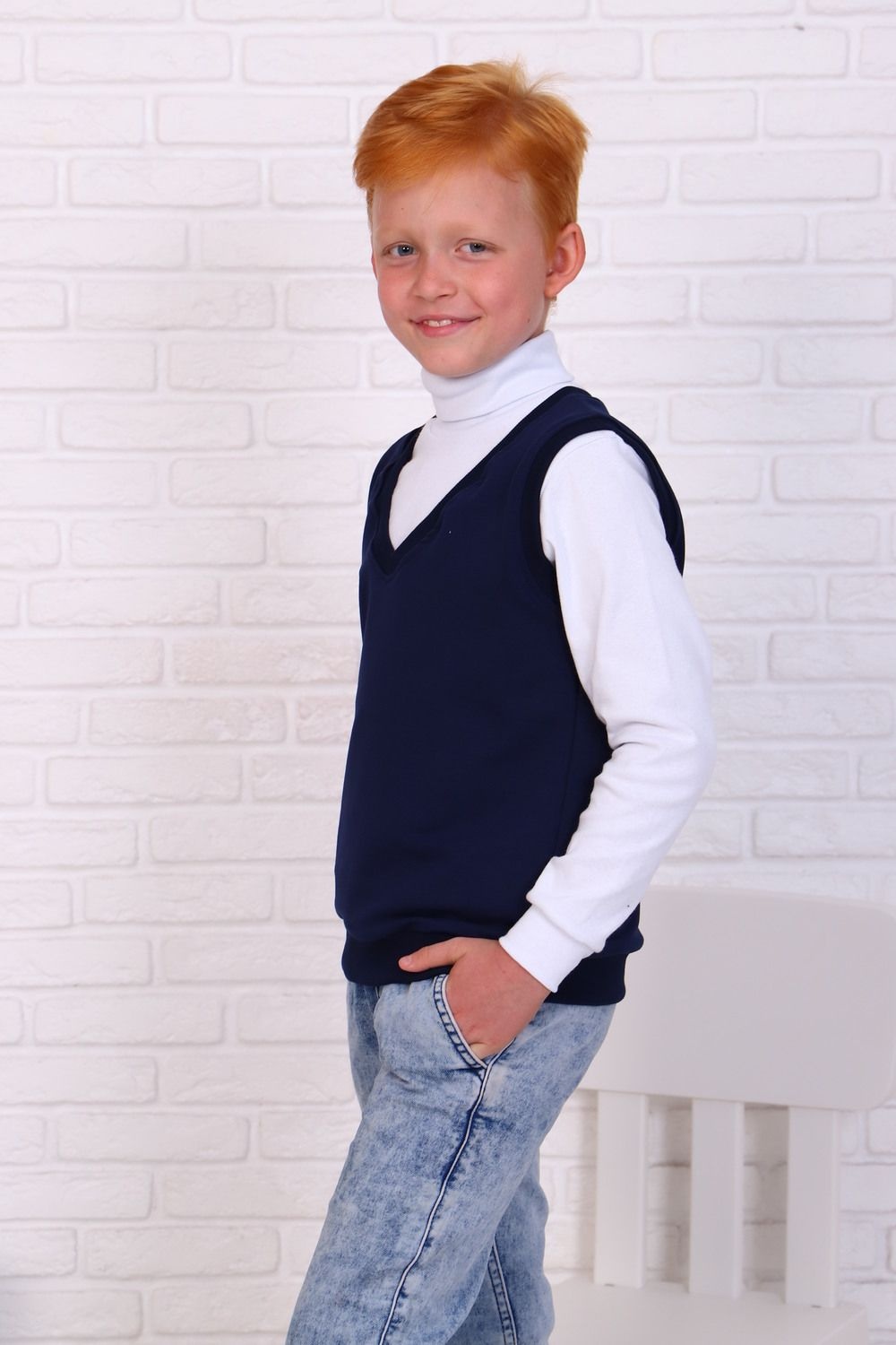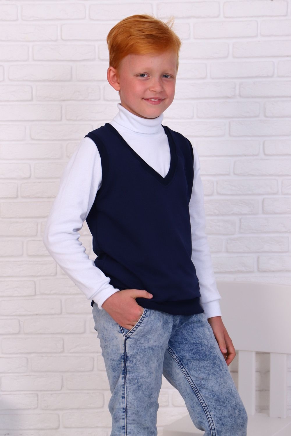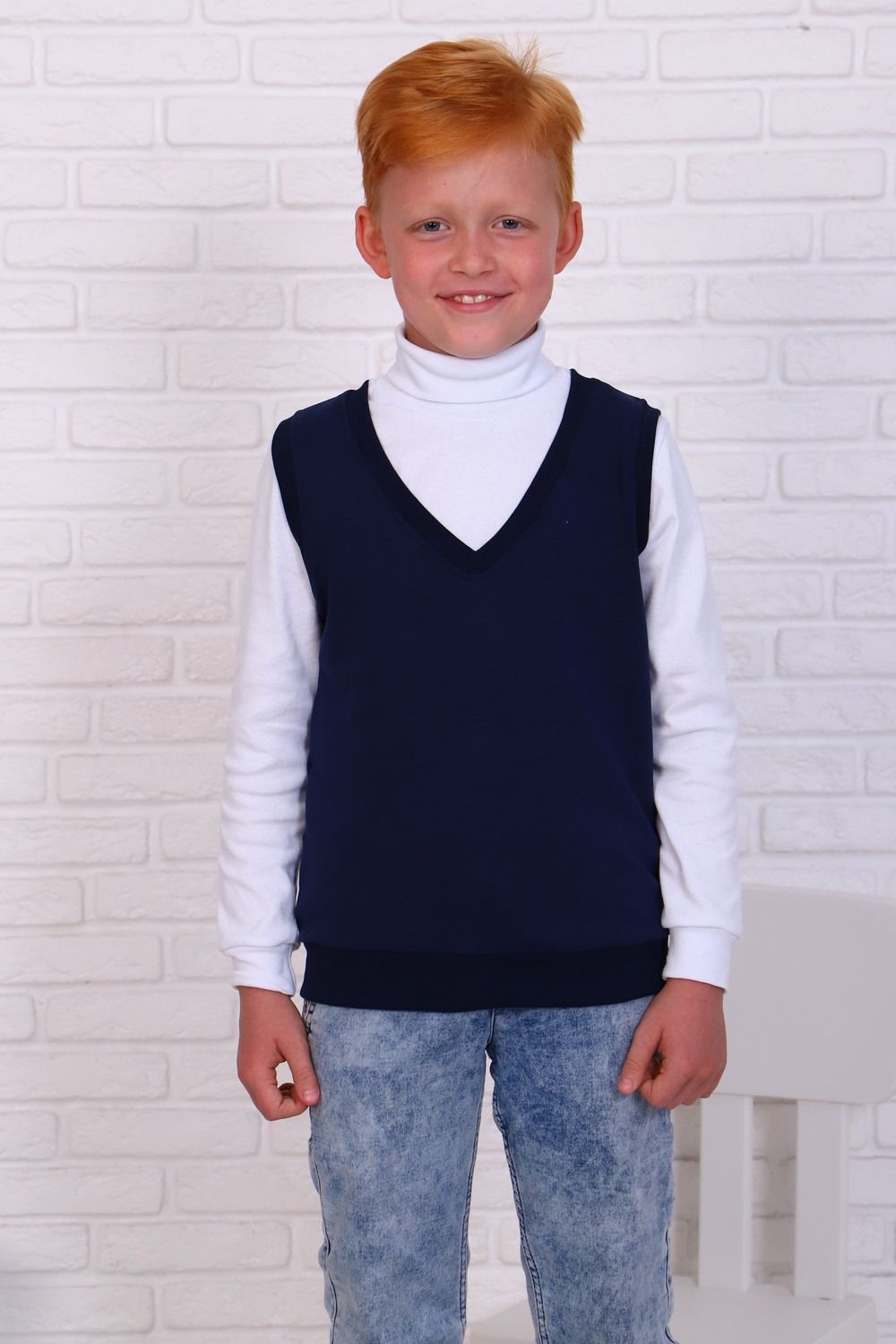 Жилетка для мальчиков, выполненный из мягкого трикотажа на основе хлопка, который дарит комфорт и не сковывает движения, позволяя ребенку быть активным. Модель прямого силуэта, с V-образным вырезом горловины. Горловина, манжеты и пояс оформлены рельефной резинкой. Универсальная вещь, которая подойдет для множества образов, как школьных, так и повседневных в стиле casual. Школьная коллекция