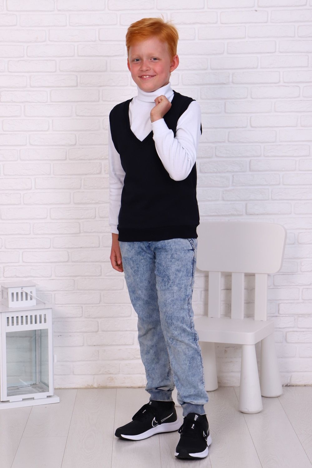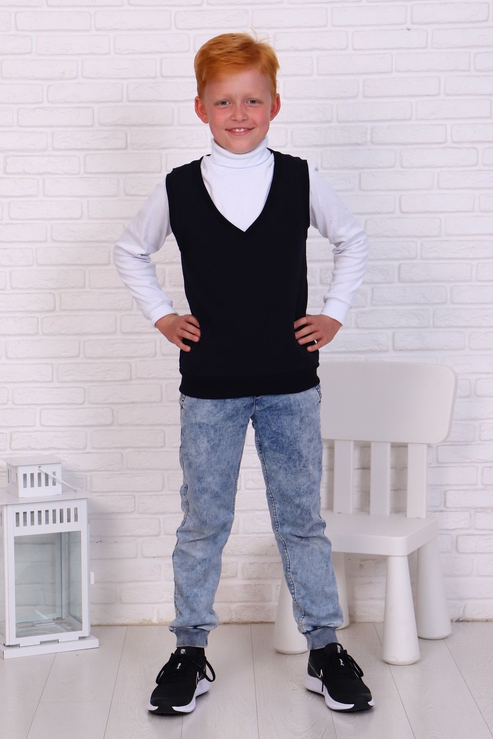 Жилетка для мальчиков, выполненный из мягкого трикотажа на основе хлопка, который дарит комфорт и не сковывает движения, позволяя ребенку быть активным. Модель прямого силуэта, с V-образным вырезом горловины. Горловина, манжеты и пояс оформлены рельефной резинкой. Универсальная вещь, которая подойдет для множества образов, как школьных, так и повседневных в стиле casual. Школьная коллекция