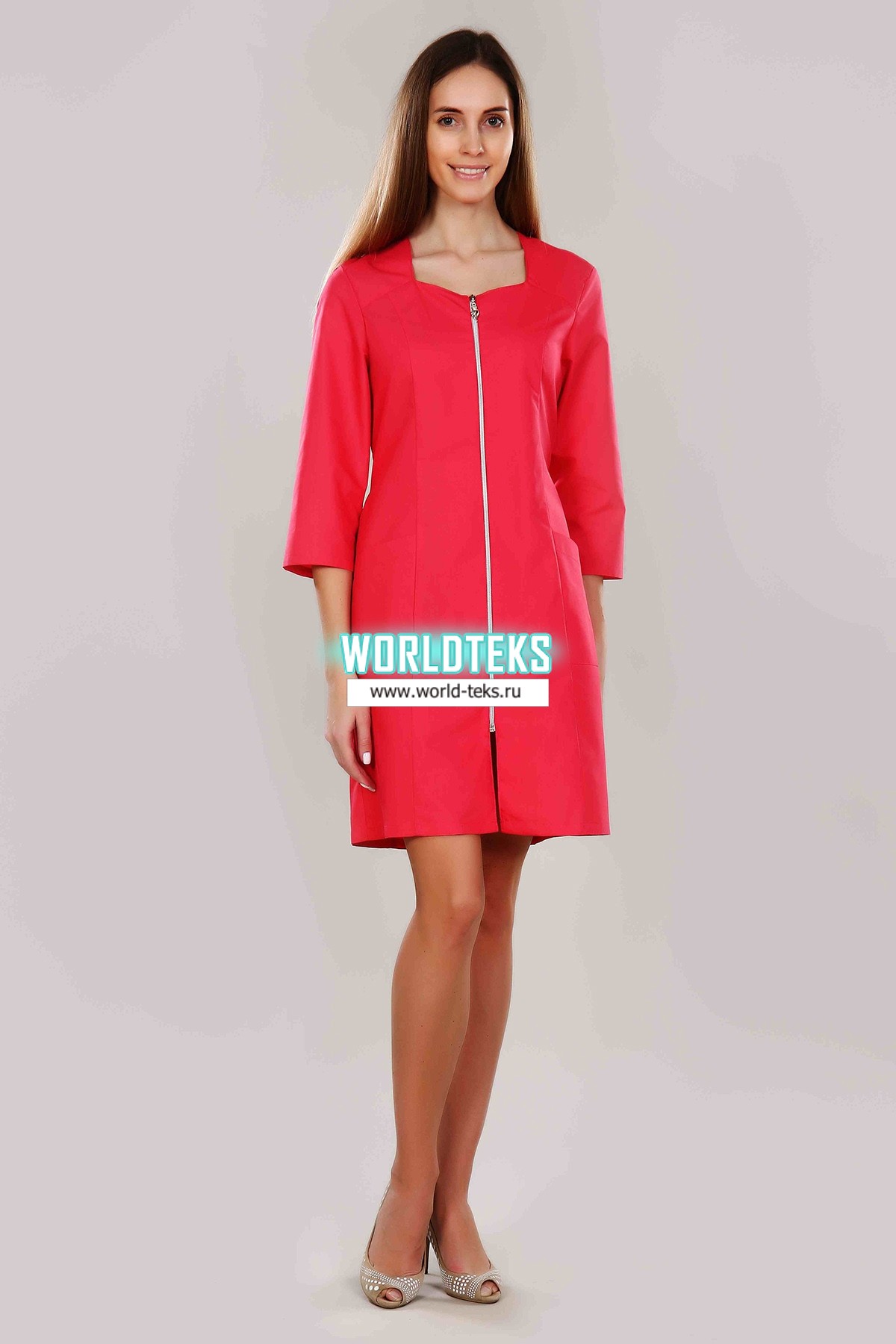 Халат медицинский женский ткань тиси (молния/яркий коралл) №ИМ-М-09А-1