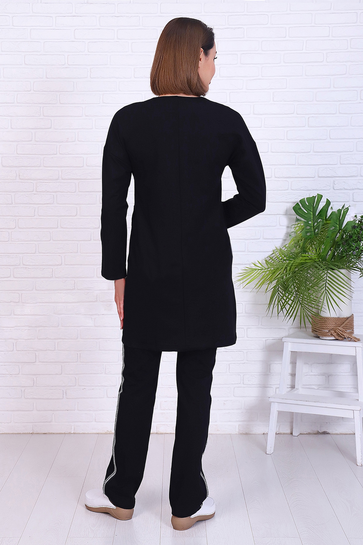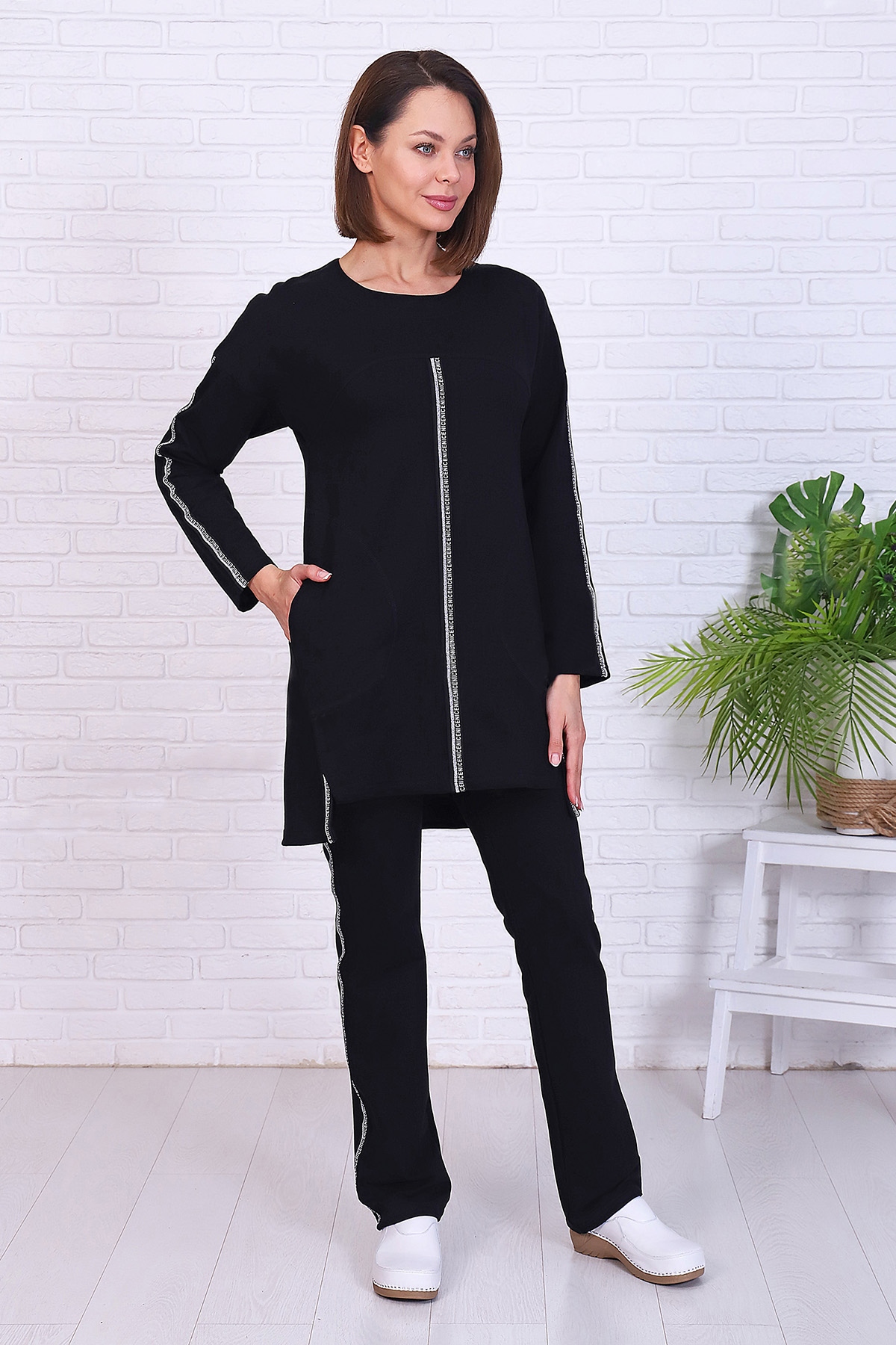 Стильный женский костюм «Халия» состоит из туники и брюк. Выполнен в чёрном цвете из плотной ткани футер. Костюм свободного кроя, не сковывает движений. Трикотажный костюм предназначен как для медицинских работников, так и для сотрудников различных сфер деятельности, а также бьюти индустрии.
