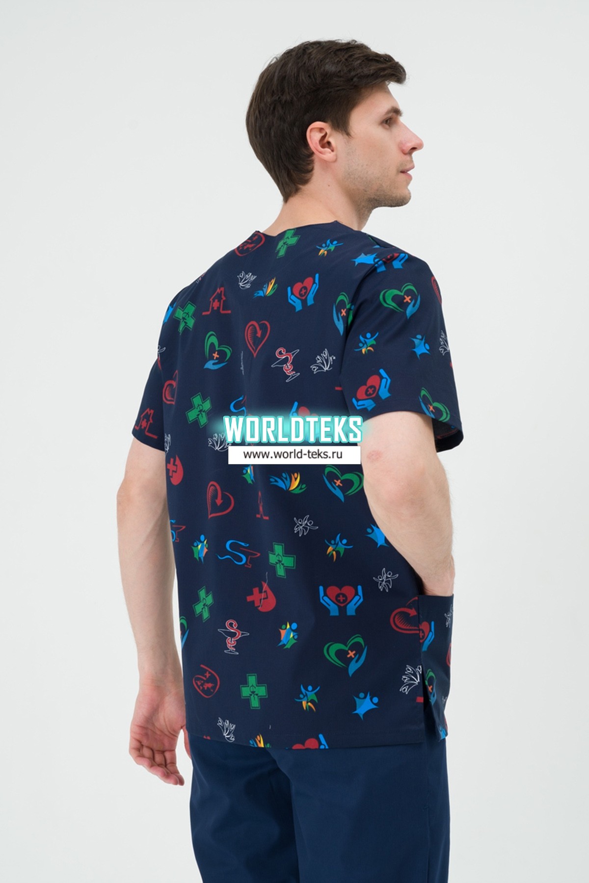 Костюм медицинский мужской (стрейч/принт, черника) №ИМ-М-286(N3-Y2)