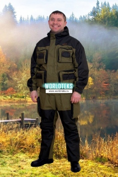 Костюм для туризма, активного отдыха, охоты, рыбалки. Костюм состоит из укороченной куртки и полукомбинезона. Брюки анатомического кроя на молнии, спинка пристегивается на молнию, под коленями стягиваются резинотканевой тесьмой. По бокам два врезных кармана, на бедрах два объемных кармана с застежкой на молнию. Крой брюк позволяет легко и свободно двигаться. куртка укороченная плотно прилегает по бедрам, не пропускает ветер. Куртка застегивается на молнию, ветрозащитный клапан на липучку. На куртке 4 объемных кармана, в которые поместится множество полезных мелочей и 6 маленьких карманов, также с внутренней стороны предусмотрен карман на молнии.