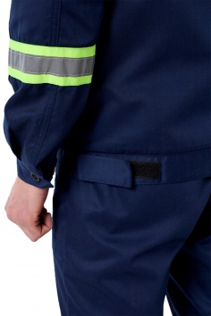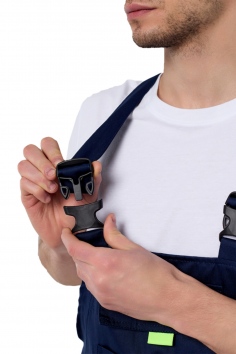 манжетами, застегивающимися на пуговицы. Полукомбинезон с застежкой на молнию в переднем шве, с эластичной