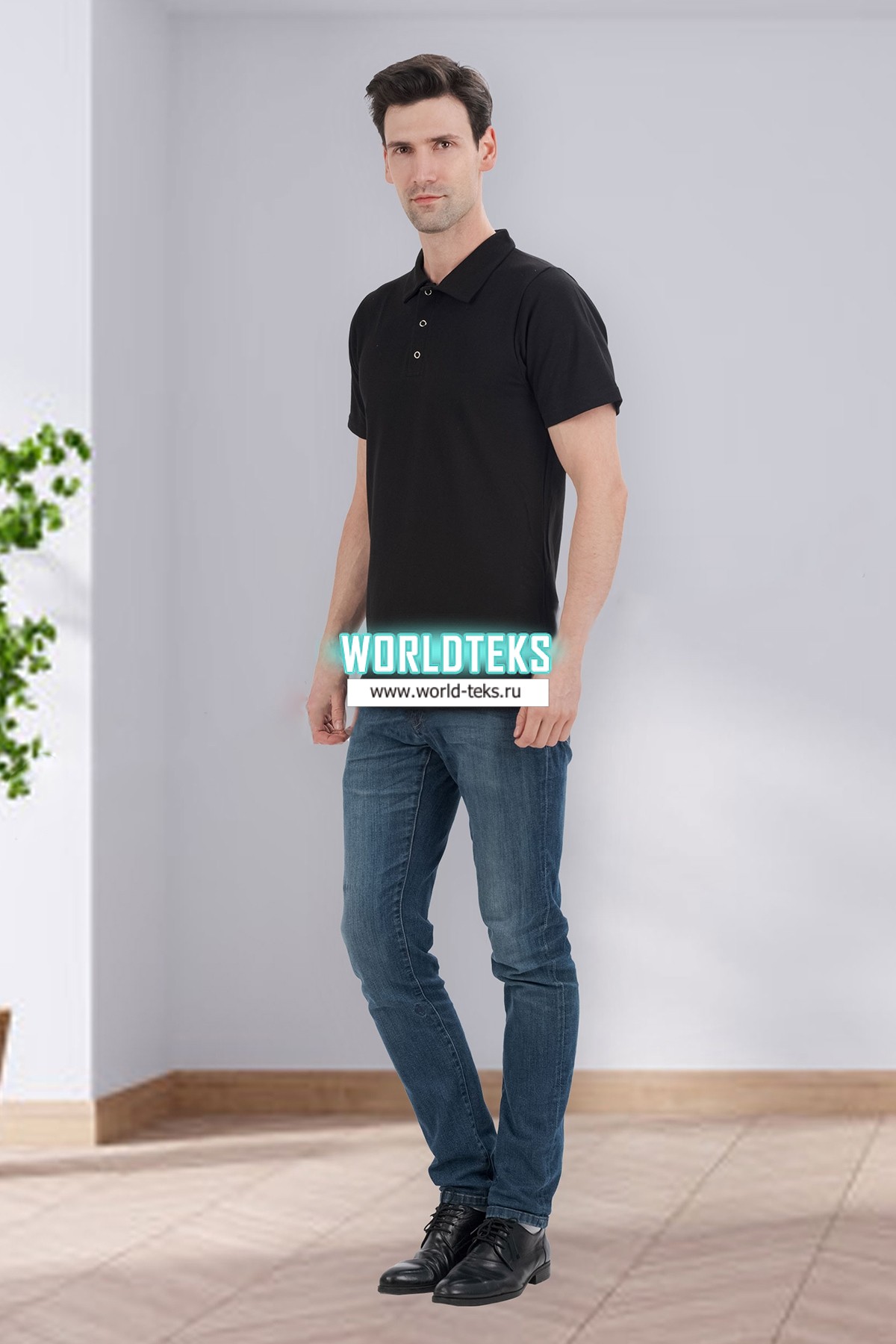 Футболка - поло мужская арт. ТР-14-41-ПИК (чёрная, короткий рукав) №УФР-ТР-541 (4П/120)