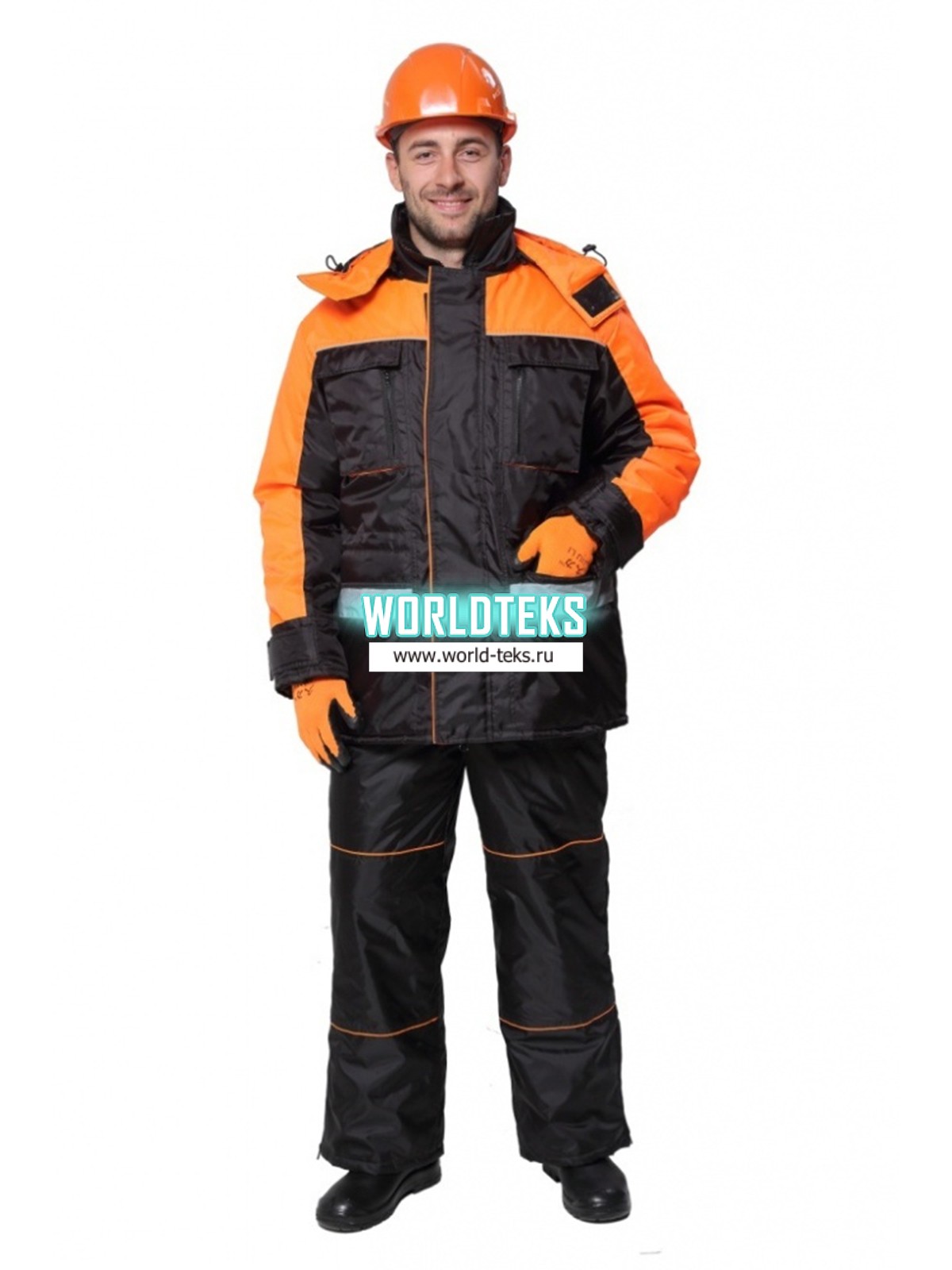 Костюм 2 класса защиты с притачным утеплителем, состоит из куртки и полукомбинезона.Куртка с центральной застежкой на молнию,