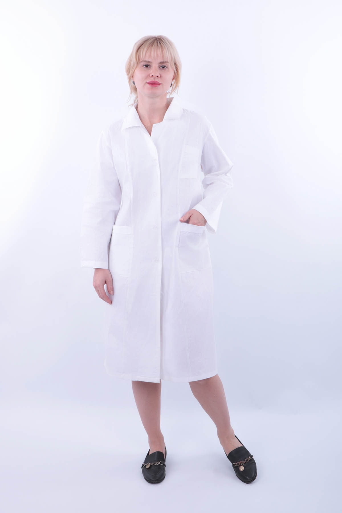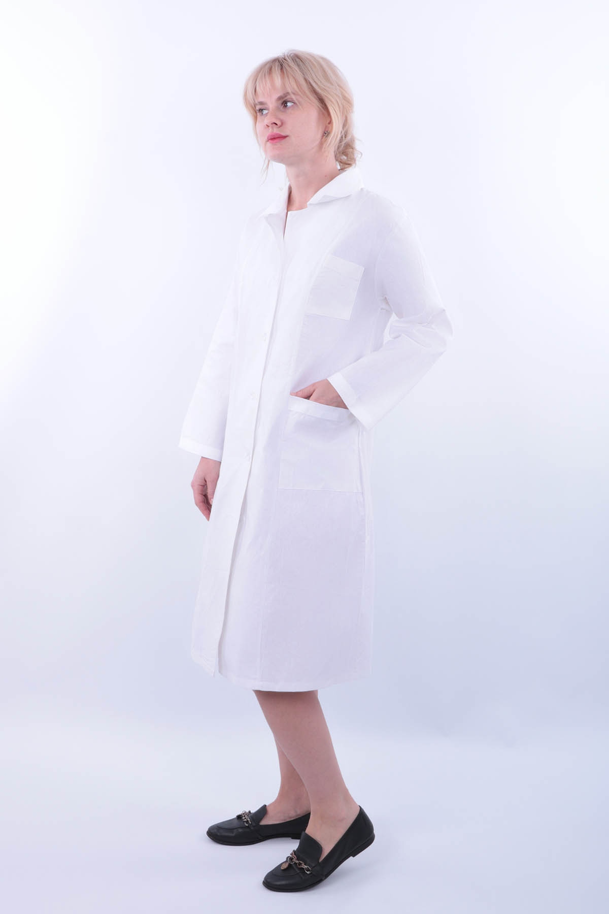 Халат медицинский женский белый для врача выполнен из однотонной специализированной, легкой медицинской ткани. Медицинская хлопковая форма станет отличным подарком для медсестры, косметолога, мастера маникюра и педикюра, массажиста, ветеринара и студента медика.