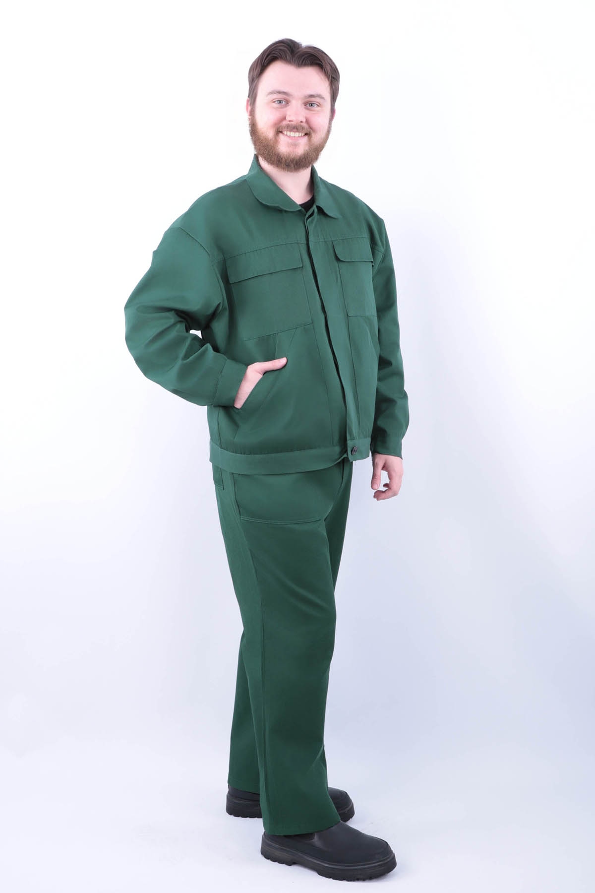 Костюм рабочий для мужчин стандарт - это классический вариант спецодежды для мужчин в демисезонный и летний период года. В комплект формы входят полукомбинезон и спецовка из хлопкового волокна с добавлением полиэстера. Костюм предусмотрен для работы на производстве или на стройке, в сервисной службе и в автосервисе, а также для других рабочих специальностей. Куртка от униформы удлиненная имеет прямой силуэт с 2 боковыми и 2 нагрудными накладными карманами, застегивается на пуговицы, модель с отложным воротником. Полукомбинезон с 2 боковыми функциональными карманами для инструментов и одним нагрудный карман.