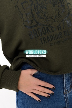 Стильная модель женской толстовки выполнена в стиле oversize из мягкого футера трехнитки в двух цветах. Спущенный рукав и горловина обработаны эластичным полотном кашкорсе. Низ изделия без обработки, что придает оригинальность. Современный принт в стиле гранж хорошо сочетается со свободным силуэтом изделия. Данная модель является базовой, прекрасно сочетается как с юбками, так и с брюками и джинсами.