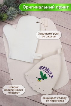 В наборе: шапка, рукавица, коврик.