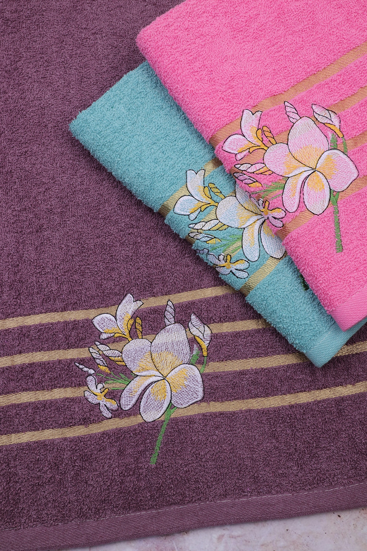 Мягкое, махровое полотенце из хлопка украшено вышиым рисунком. Махровая ткань хорошо впитывает влагу и приятна к телу.