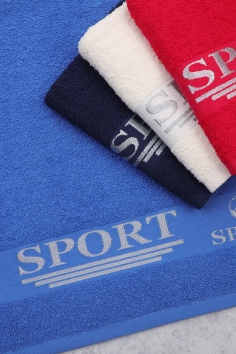 Мягкое, махровое полотенце из хлопка с надписями. Махровая ткань хорошо впитывает влагу и приятна к телу.