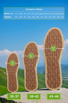 Размеры: 35 (23,2 см), 36 (23,5 см), 37 (24 см), 38 (24,5 см), 39 (25 см), 40 (25,5 см), 41 (26 см), 41,5 (26,5 см), 42 (27 см), 43 (27,5 см), 44 (28 см), 45 (28,5 см), 46 (28,8 см) - в скобках указана длина.
