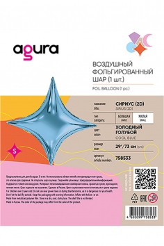 Шар фольгированный "ЗВЕЗДА 4х-конечная" (голубой) №ВЗ1204-1262