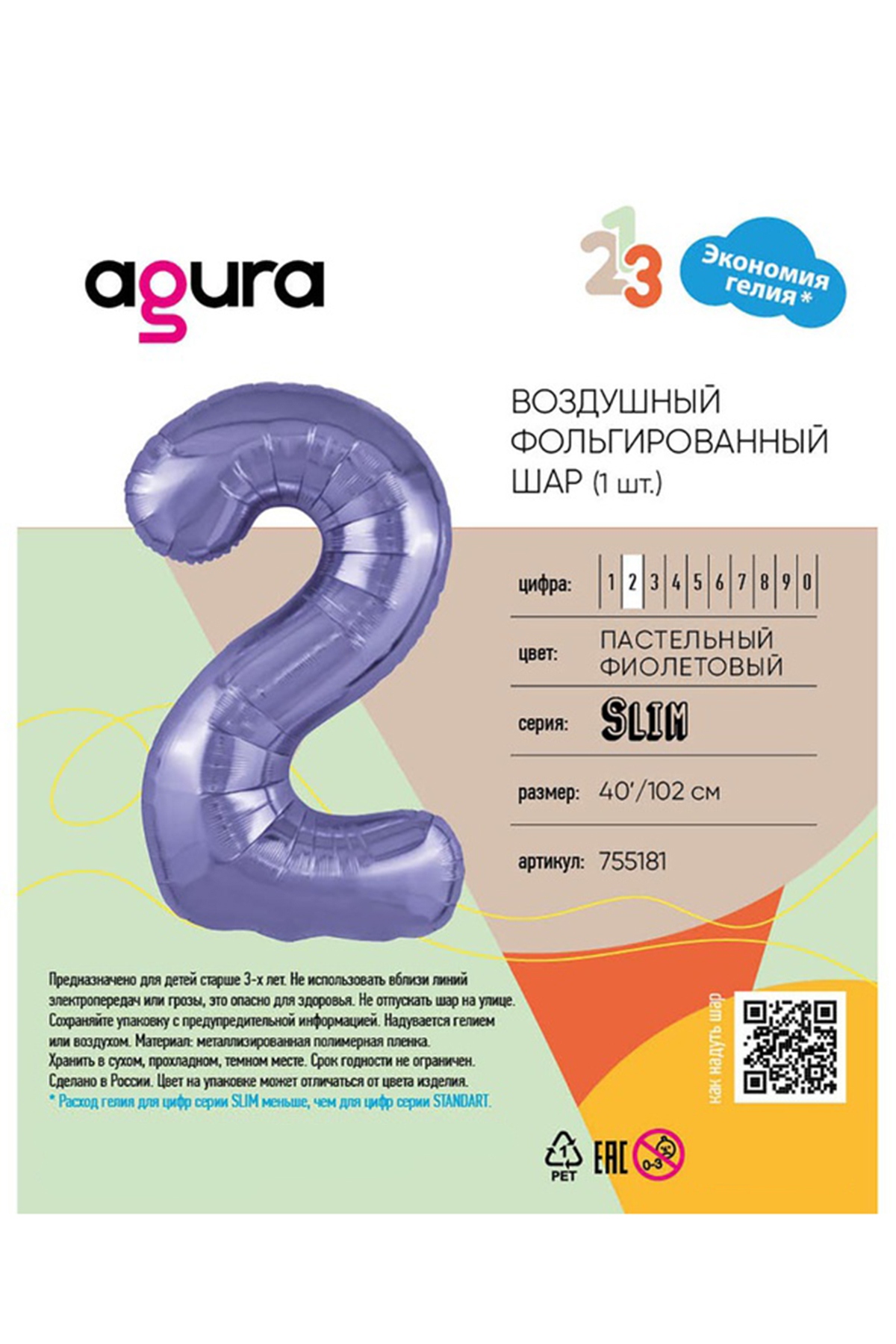 Шар фольгированный ЦИФРА 2 40" Пастель Lavender №ВЗ1207-3719
