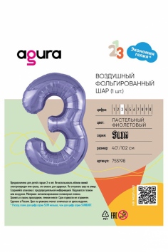 Шар фольгированный ЦИФРА 3 40" Пастель Lavender №ВЗ1207-3720
