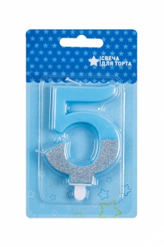 Свеча-цифра "5" Голубой блеск №ВЗ1502-5218