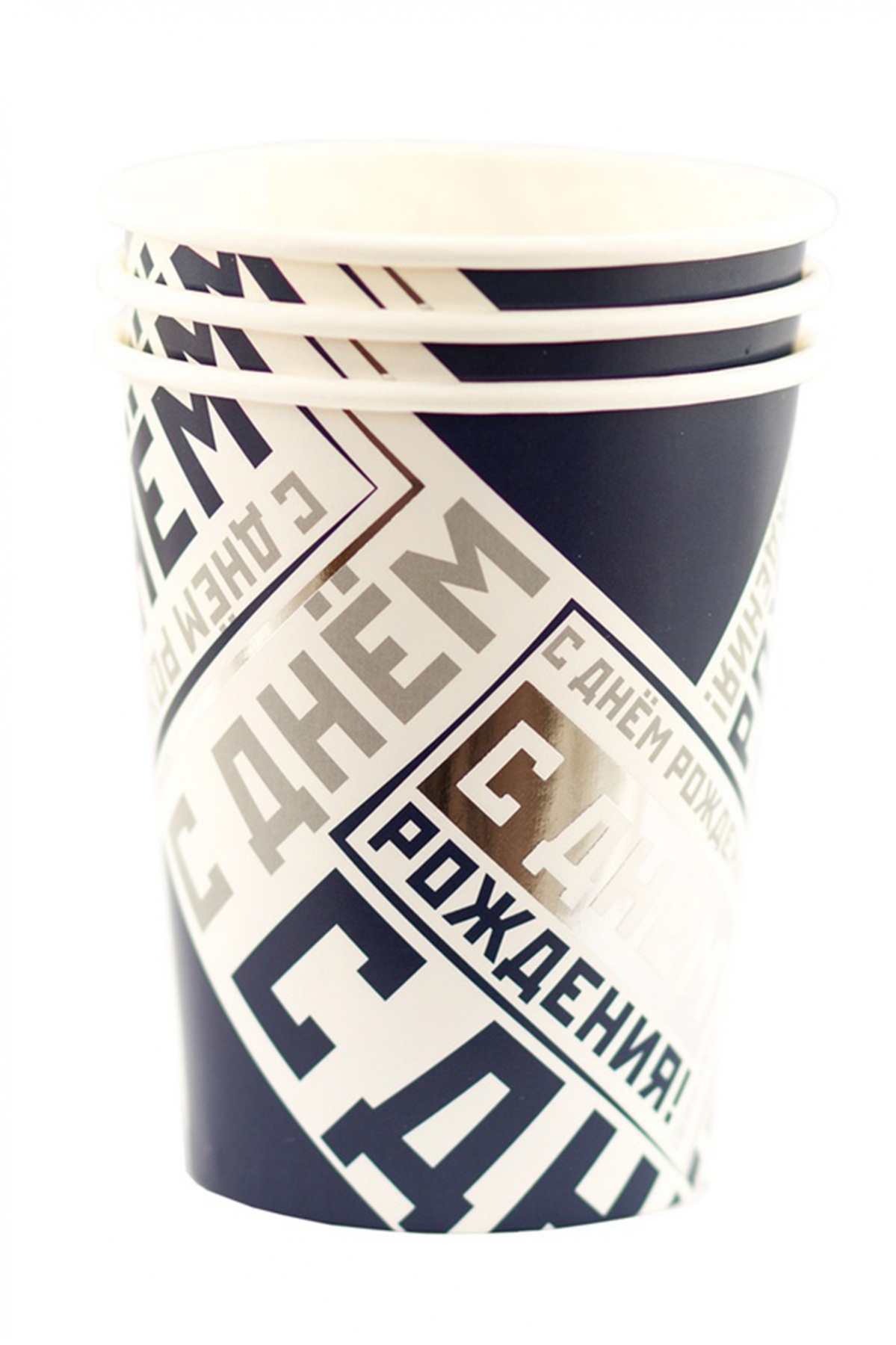 Стильные бумажные стаканчики с серебряным фольгированным тиснением.