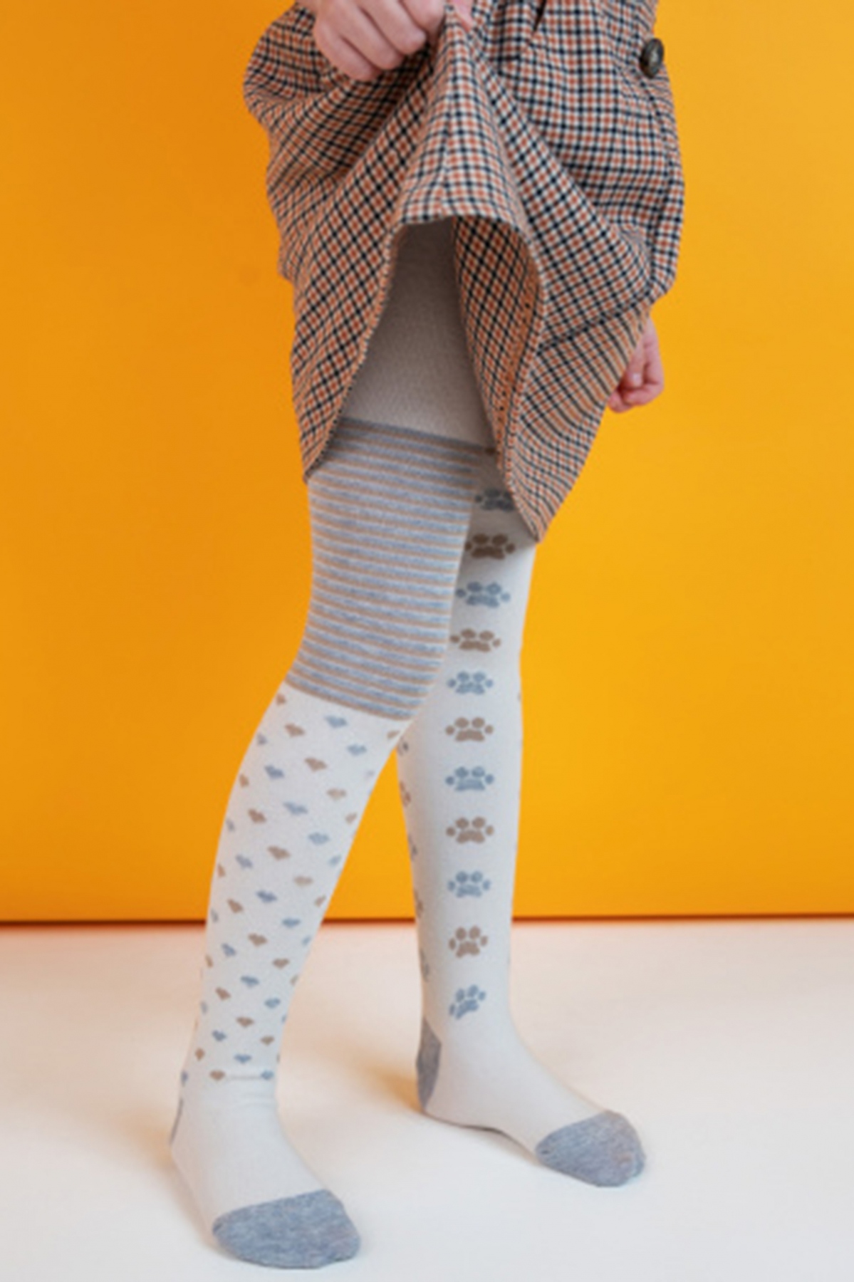 Демисезонные детские колготки из хлопка для девочек с компьютерным рисунком милого мишки на ластовице и необычным распределением рисунка по всей длине ножки.