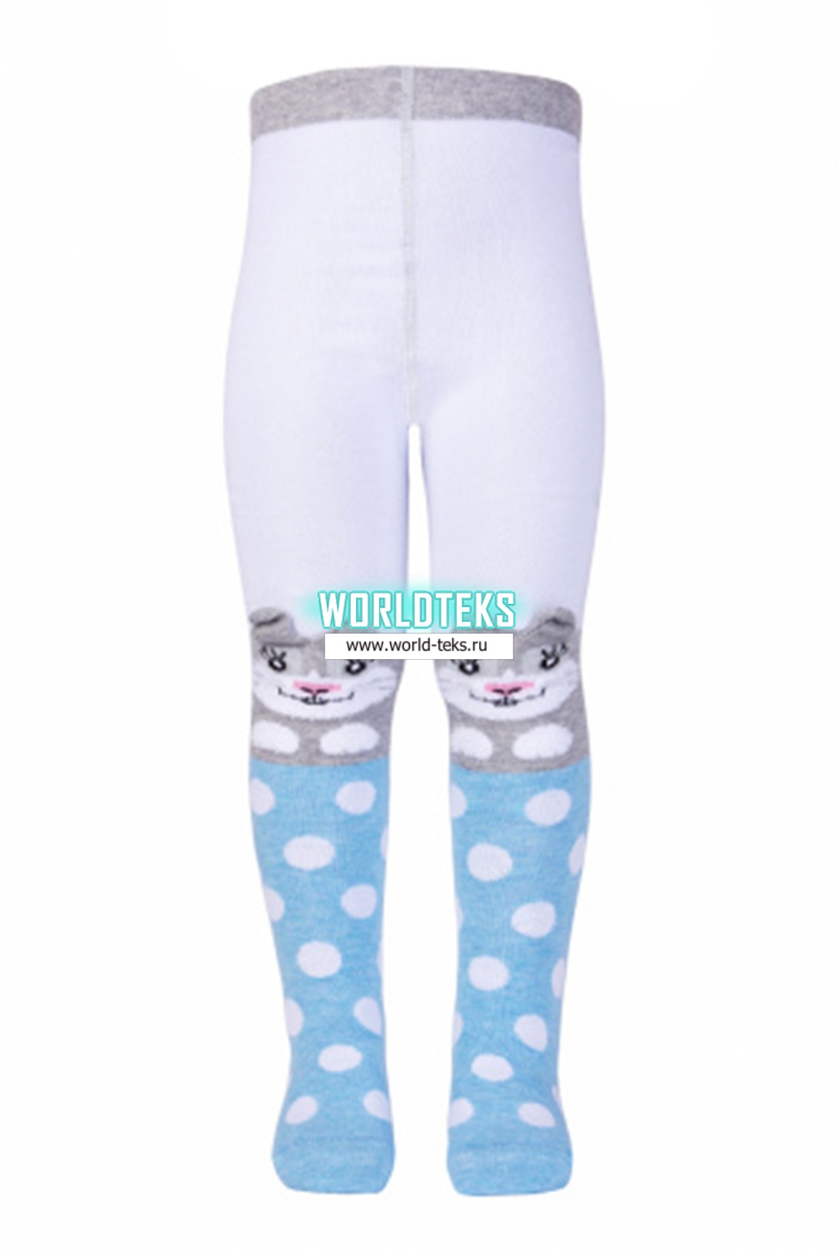 Детские демисезонные колготки с реалистичным изображением 3 D эффекта и оригинальным решением использования мягкой, ворсистой пряжи "травка" в создании образа мордочки зайки, расположенной на каждой ножке.