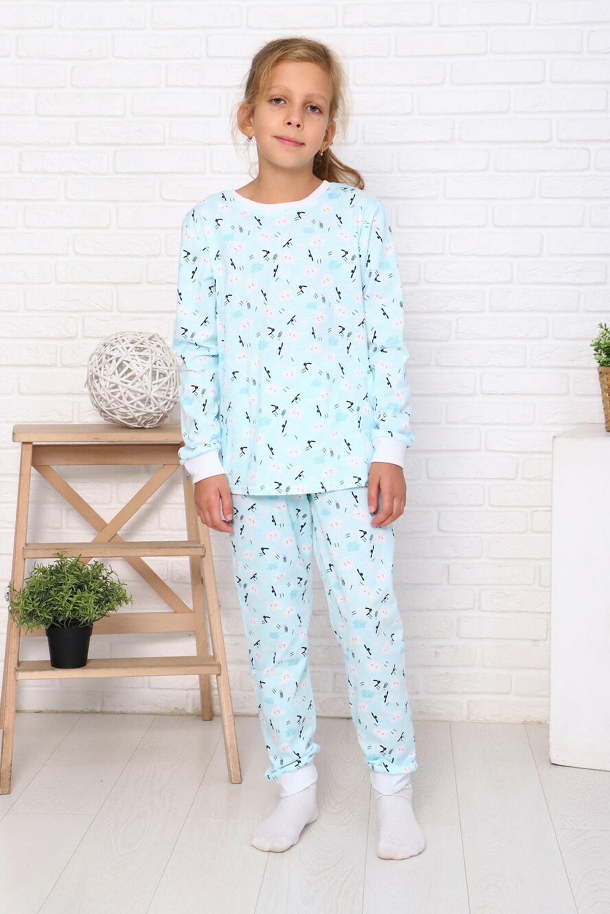Пижама на девочку "Барашки кудряшки" (дл. рукав, бирюзовый) №МРЛ-ПЖ.0195