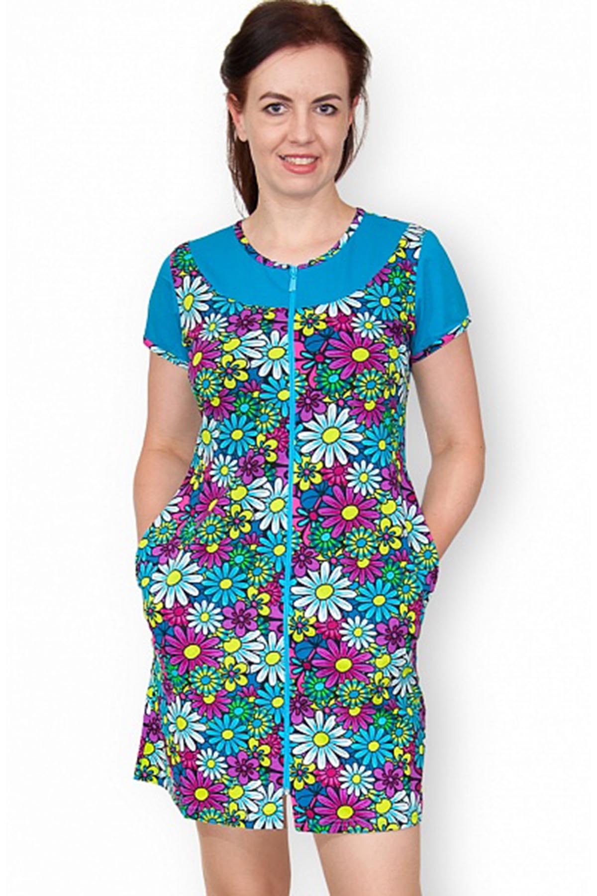 Халат женский на молнии (бирюзовый) №ПО-259-1