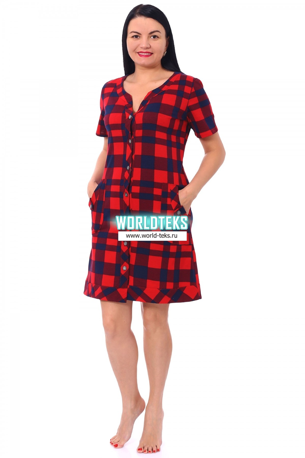 Халат на пуговицах "Кантри красный" №ДТР-К-35