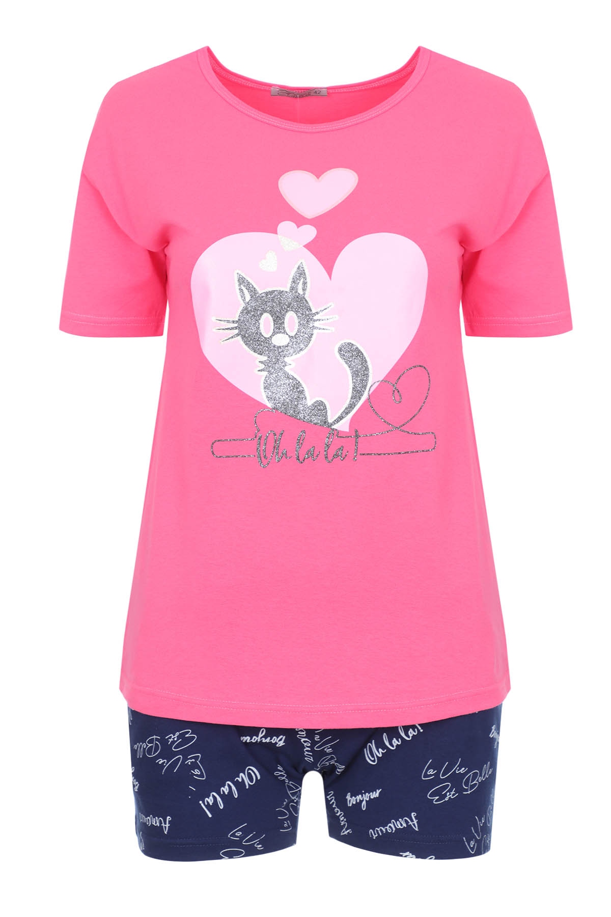 Костюм женский состоит из футболки и шорт. Футболка полуприлегающего силуэта с короткими рукавами и круглым вырезом горловины. Шорты с эластичной резинкой в поясе и двумя внутренними карманами спереди. Ткань приятная к телу.