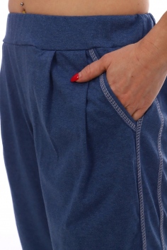 Шорты 'бермуды' широкие, прямые, длиной ниже колена, на эластичном поясе, с карманами, со вставкой вдоль боковых швов. Низ шорт обработан манжетом. Спереди по шву притачивания пояса заложены складки. Вход в карман шорт обработан бейкой из основного полотна.