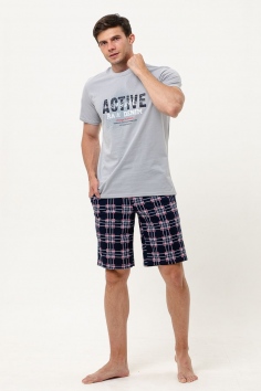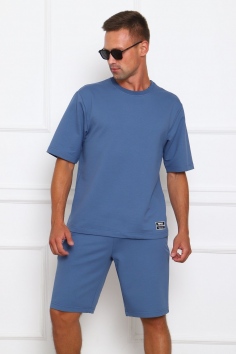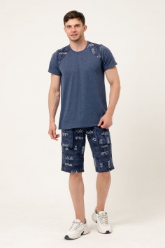 Костюм мужской (футболка+шорты, синяя клетка) №NY-19